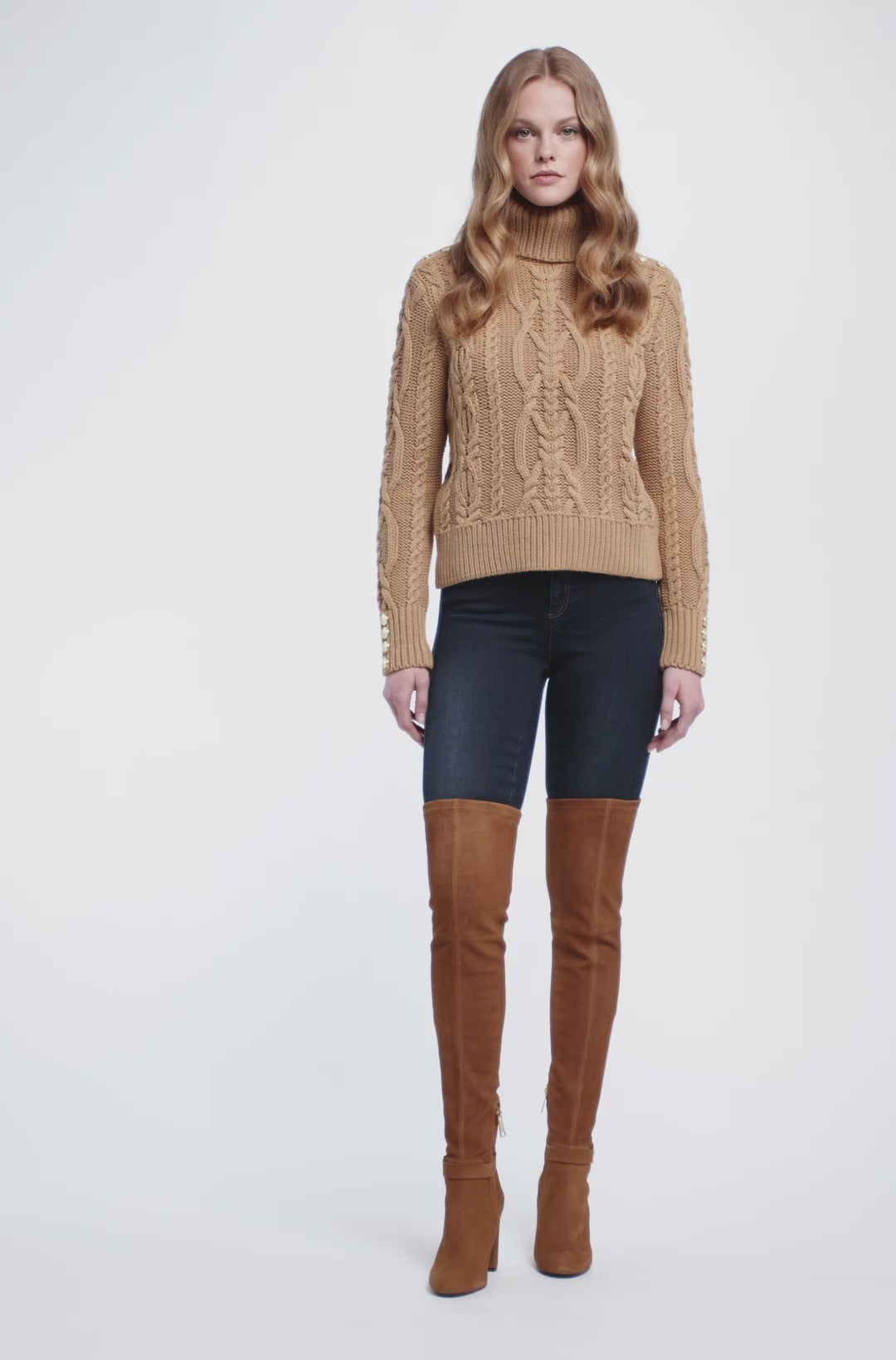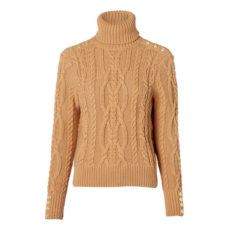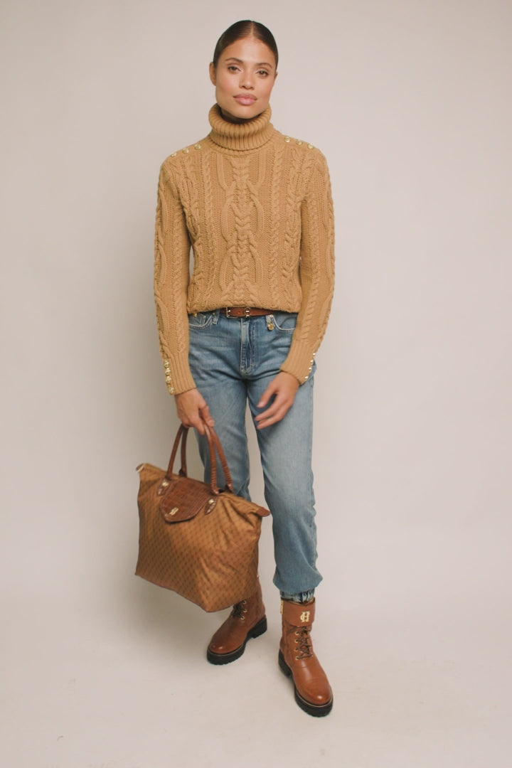 Holland Cooper Belgravia Cable Ladies Roll Neck Knit - Camel