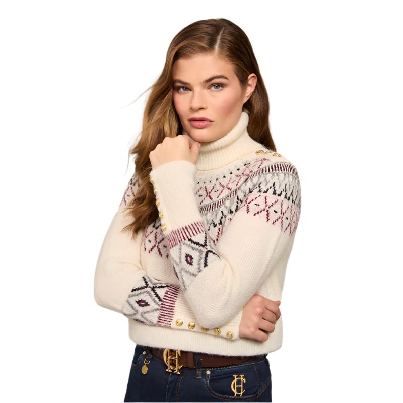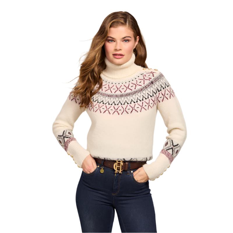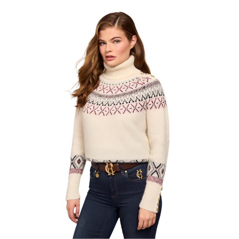 Holland Cooper Fairisle Knit Ladies Alpaca Mix Roll Neck Jumper - Cream