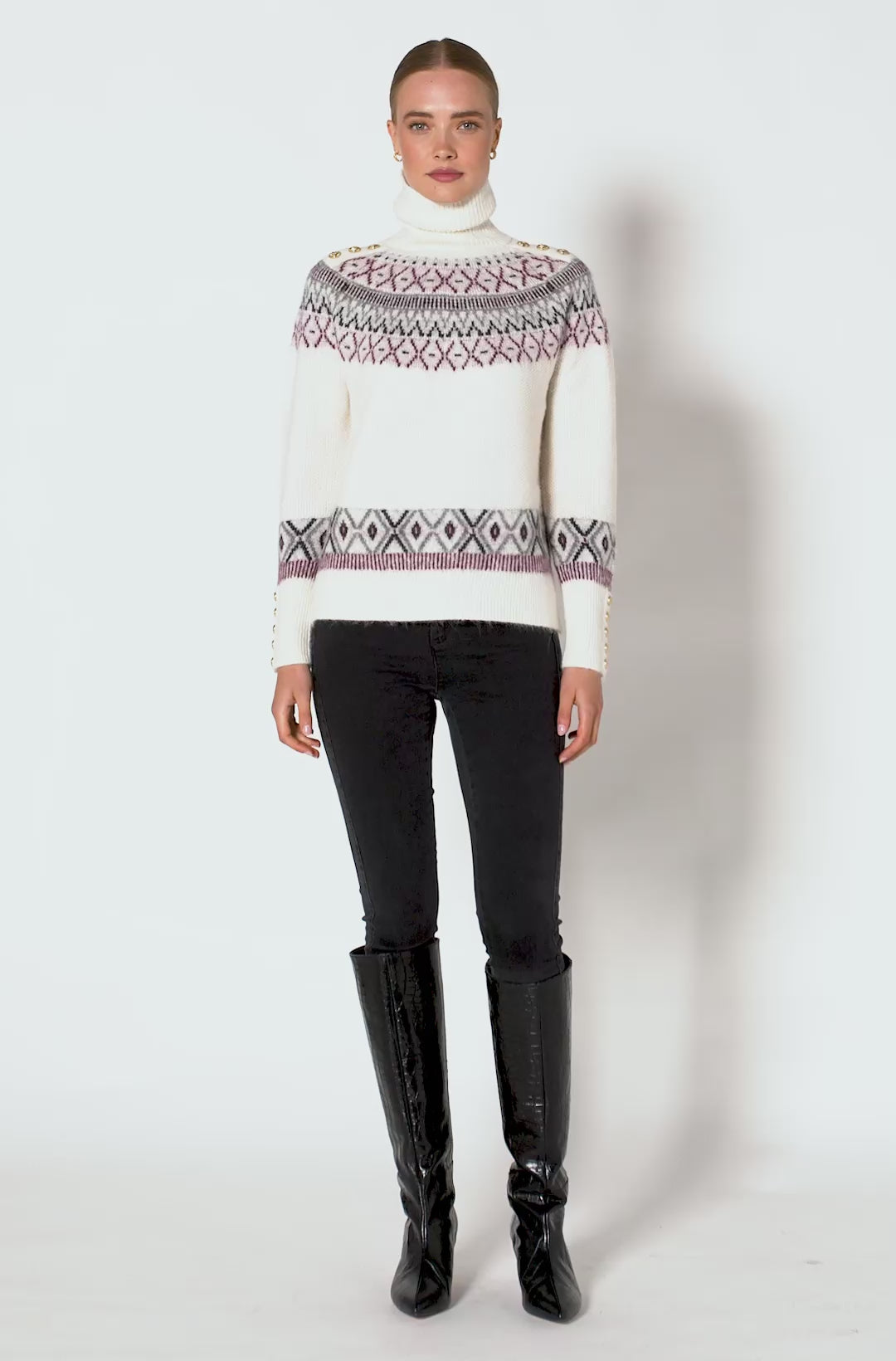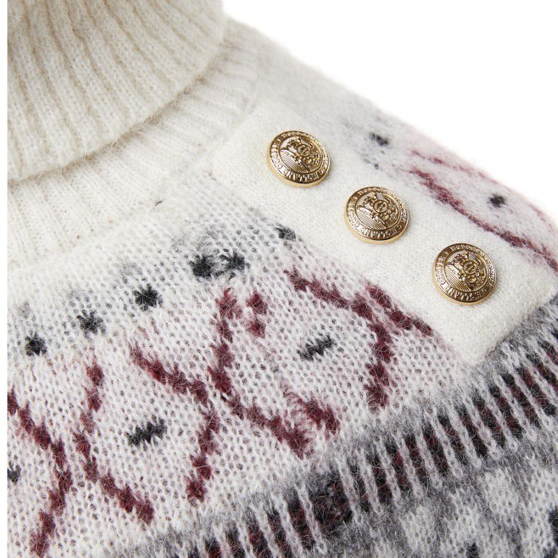 - Fairisle knit across the shoulders and hem