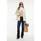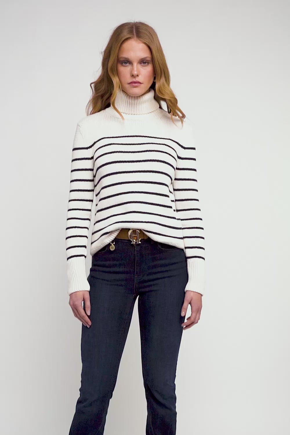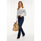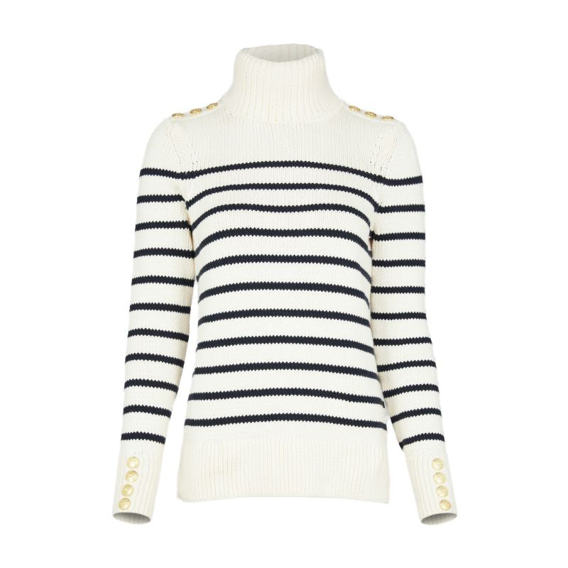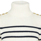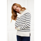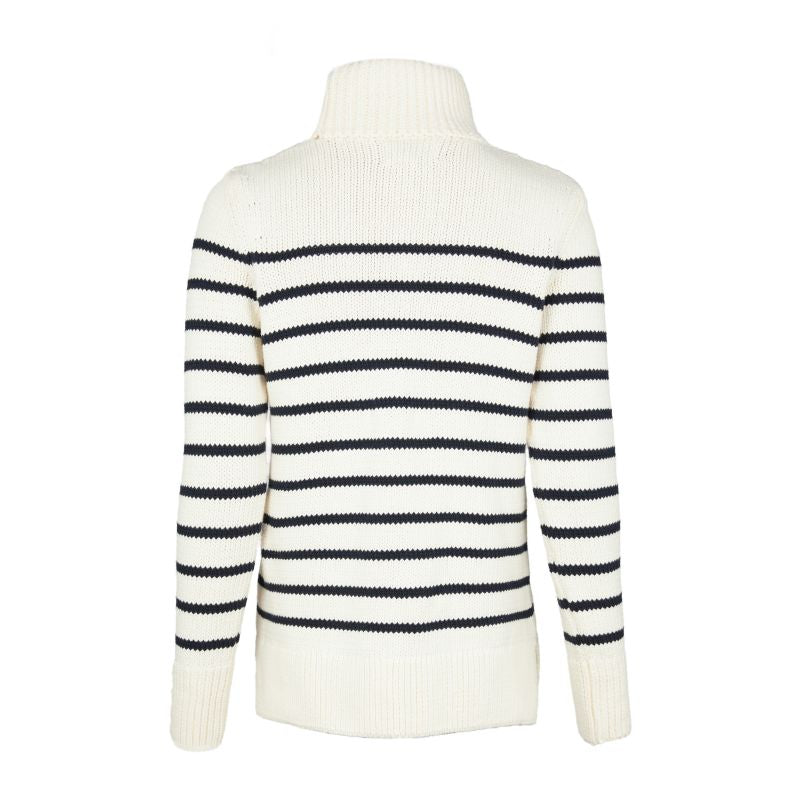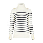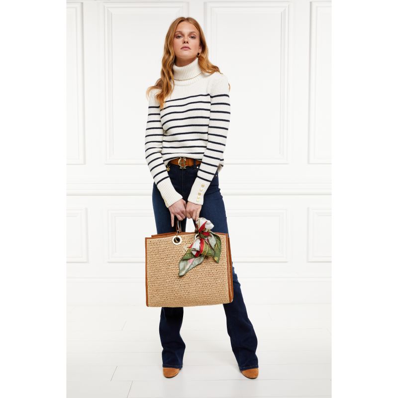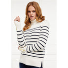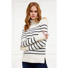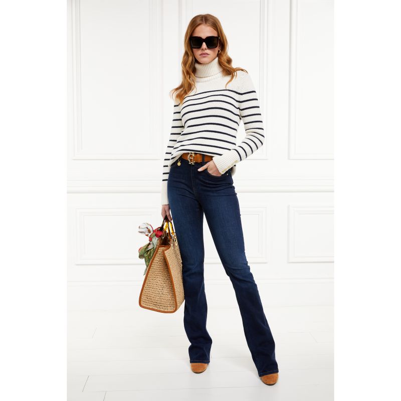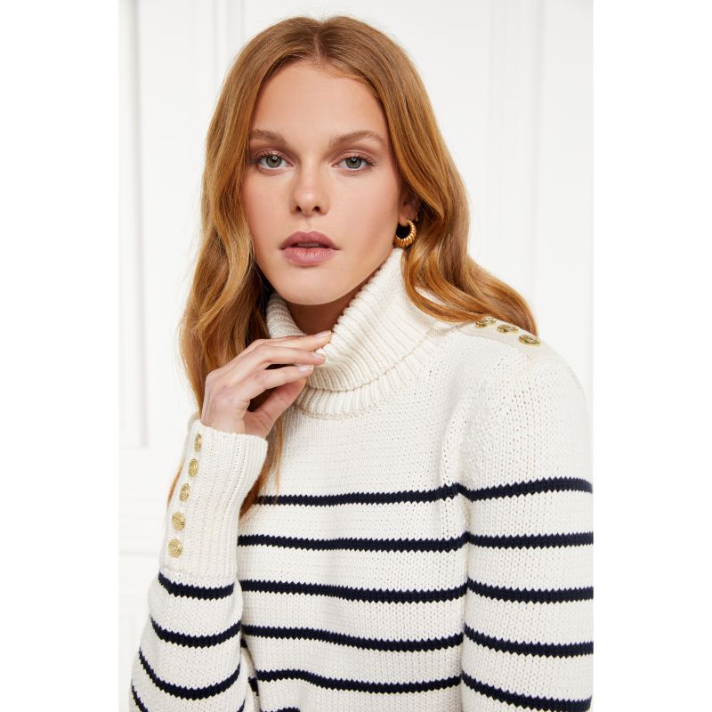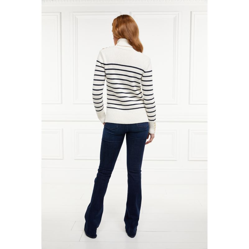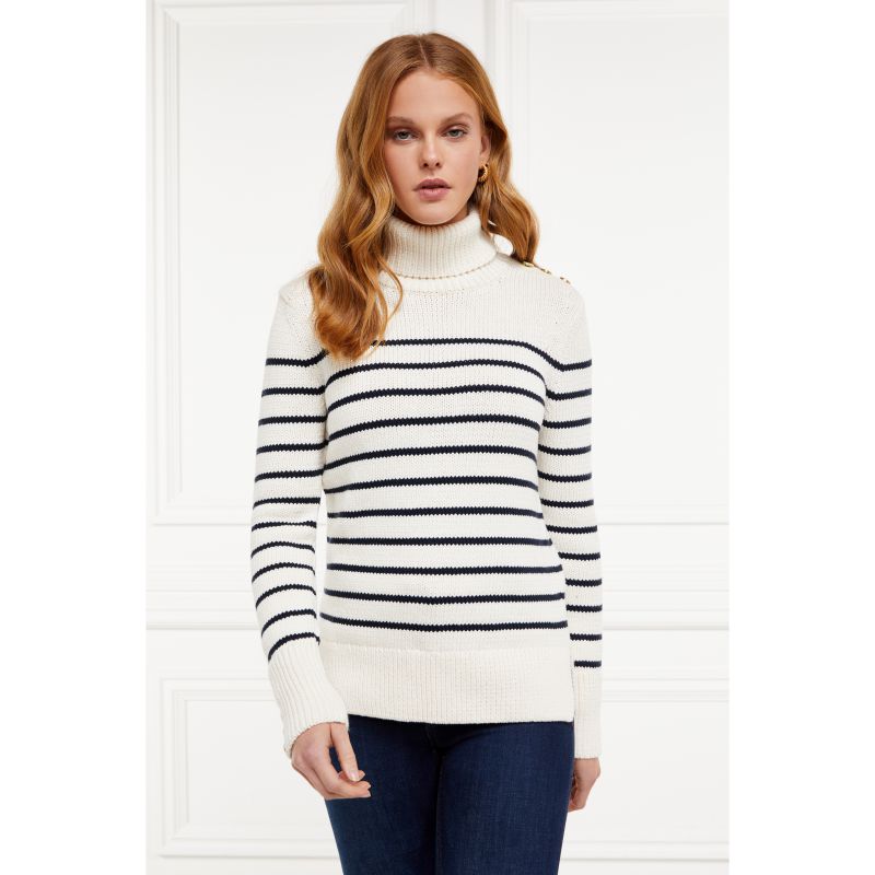Holland Cooper Henley Striped Ladies Roll Neck Jumper - Natural/Ink Navy