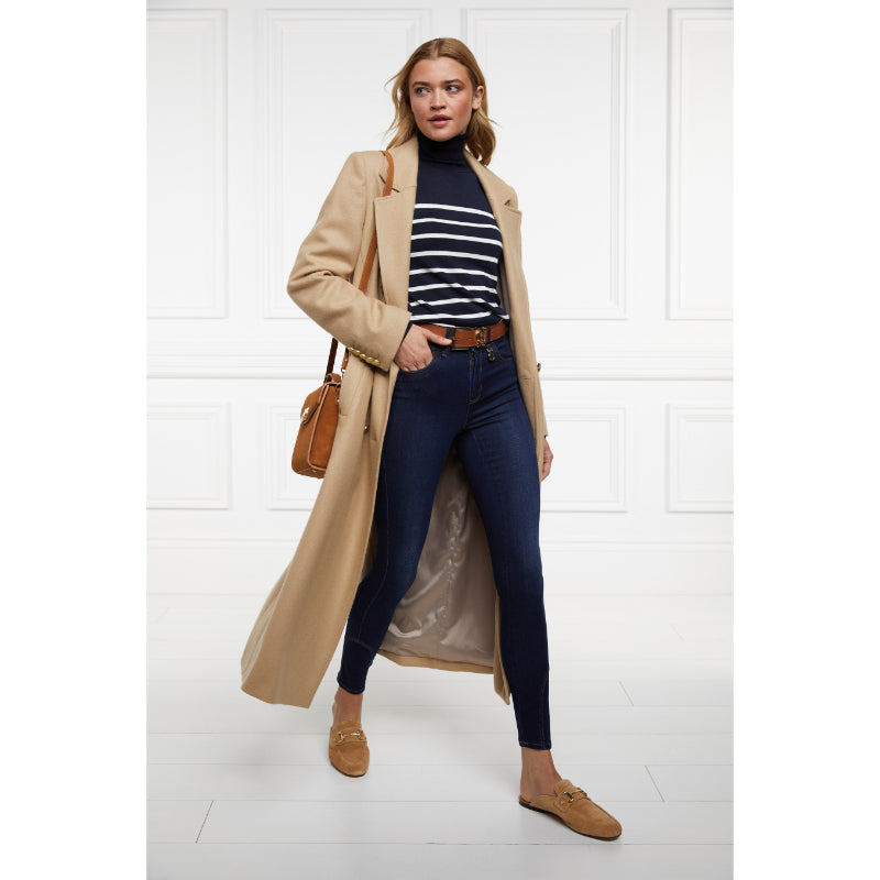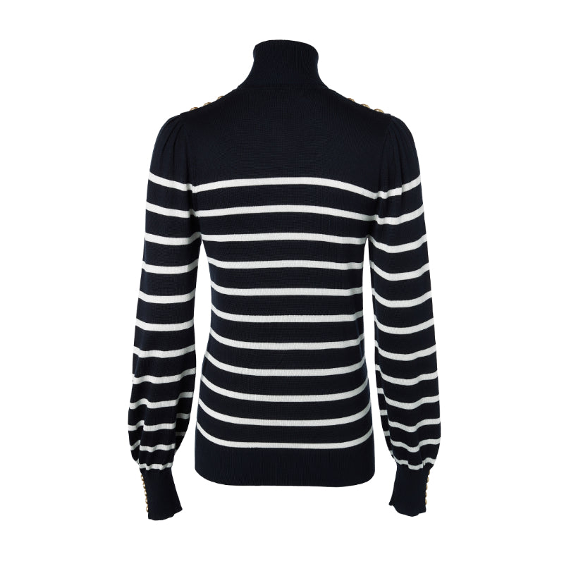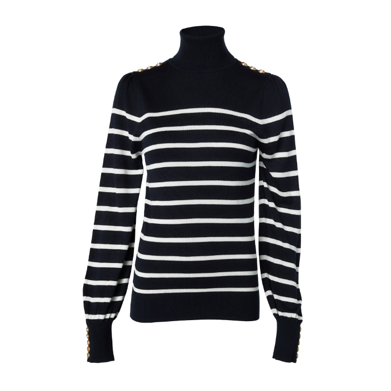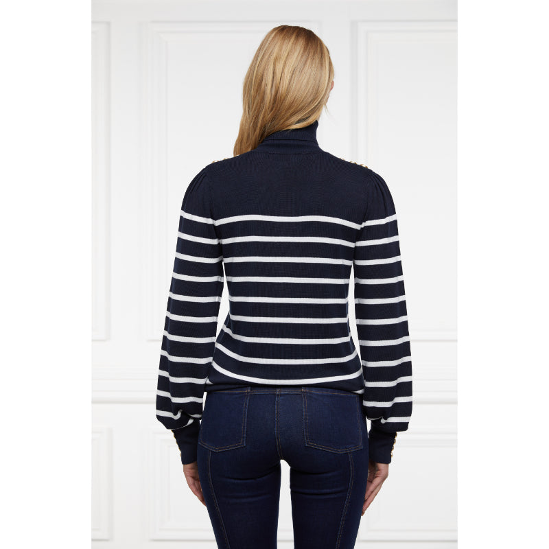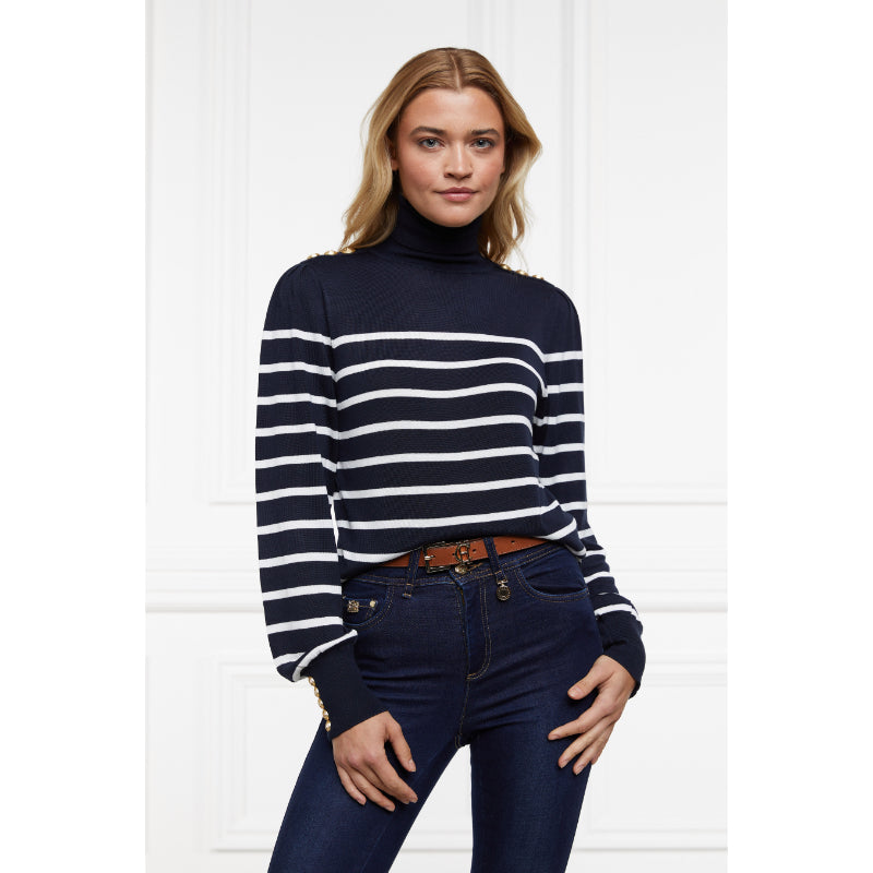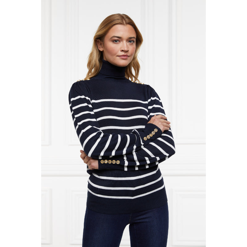 Holland Cooper Kelsie Roll Neck Ladies Knit Jumper - Ink Navy/Natural Stripe