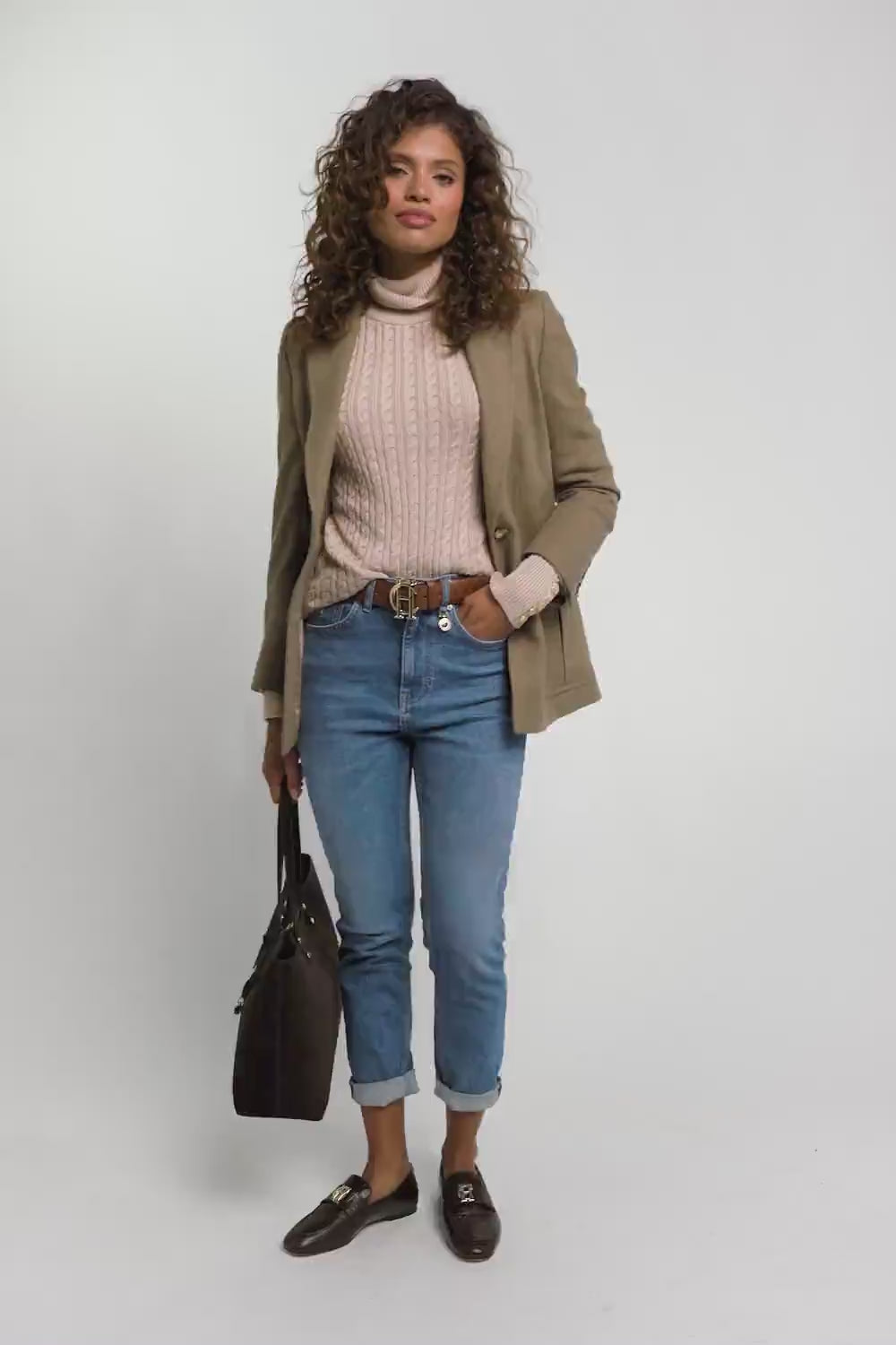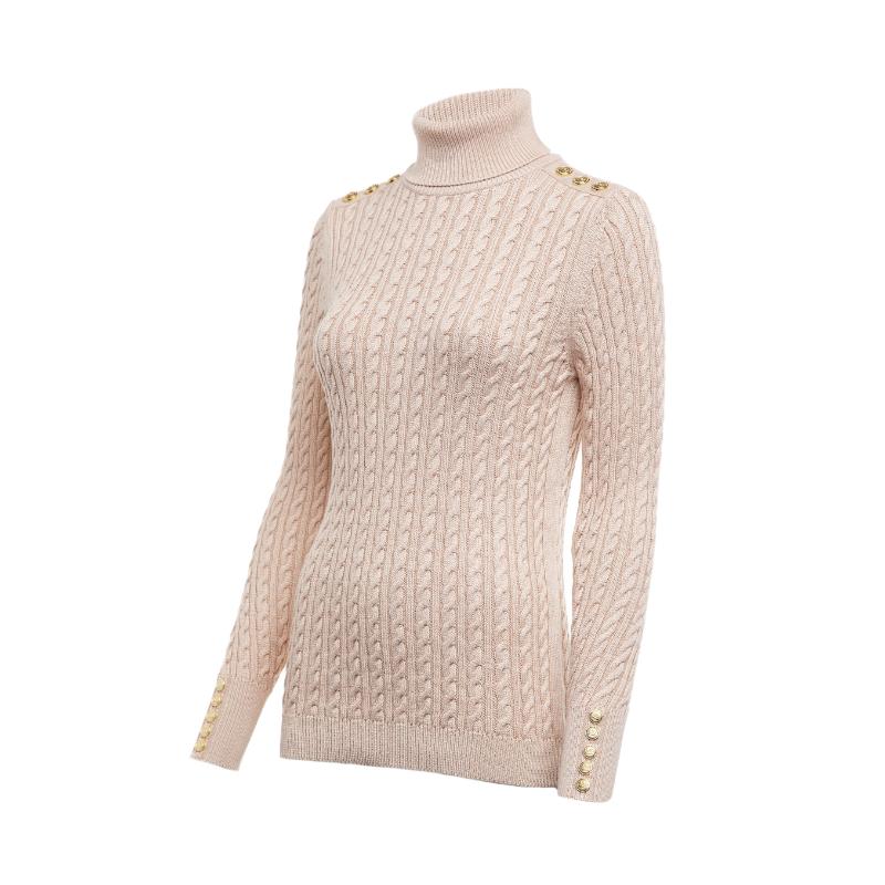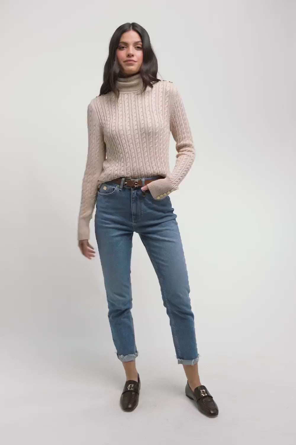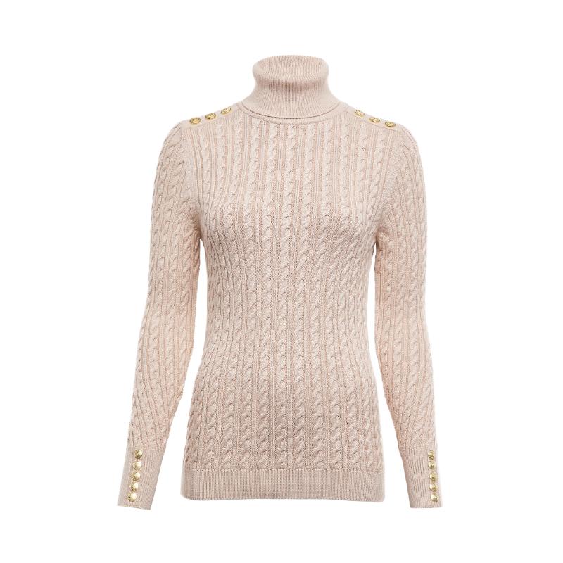 This versatile and elegant sweater from Holland Cooper is a must-have in any wardrobe. With its slim fit and preppy aesthetic, it's perfect for everyday wear. Featuring a relaxed roll neck, long sleeves, and signature gold rivets on the cuffs, this knit will become your new go-to piece.