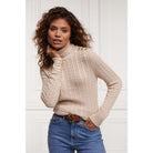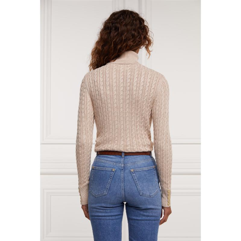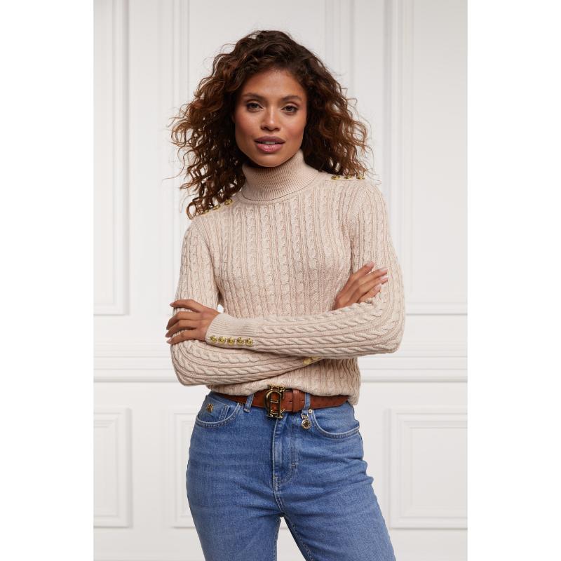 Holland Cooper Seattle Roll Neck Ladies Cable Knit Jumper - Oatmeal