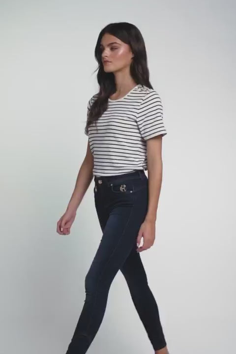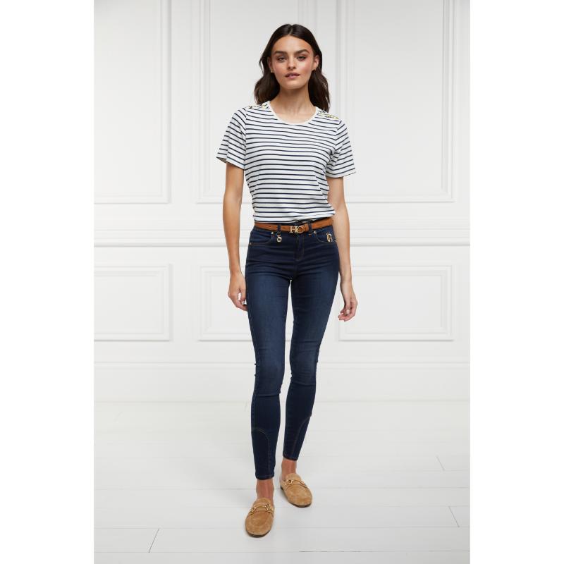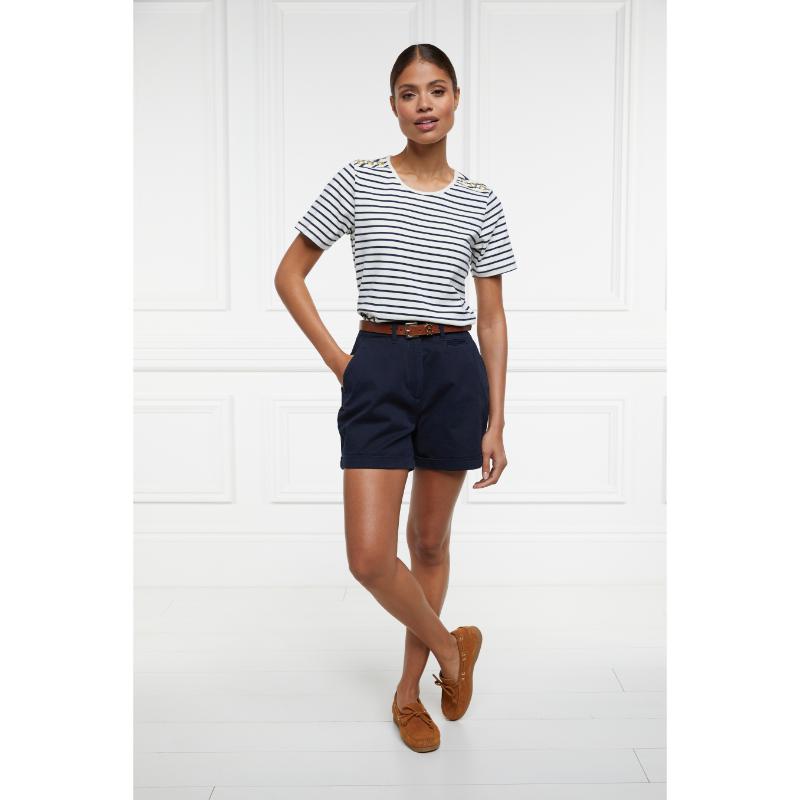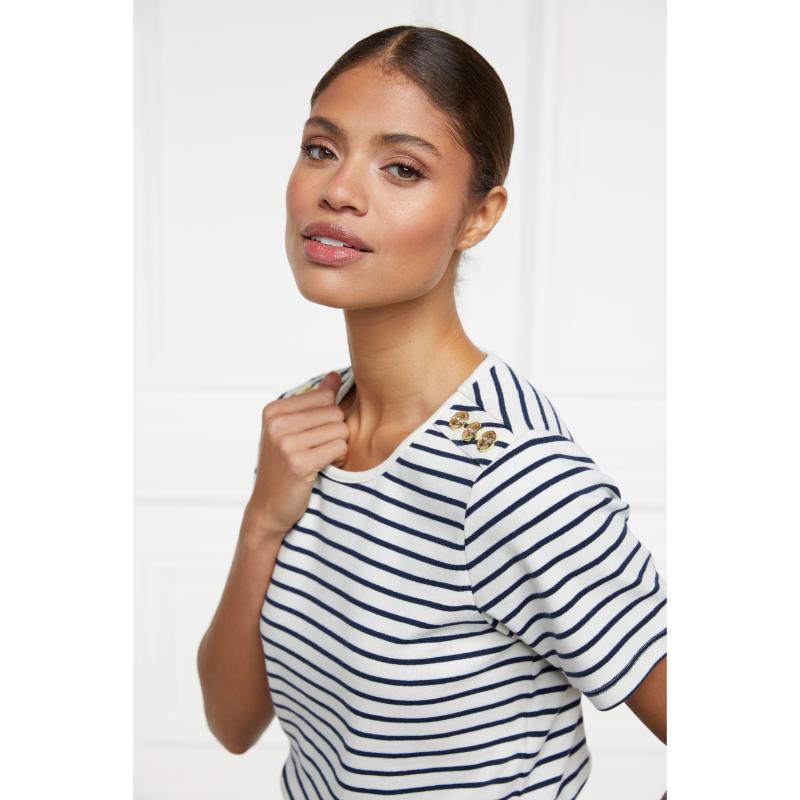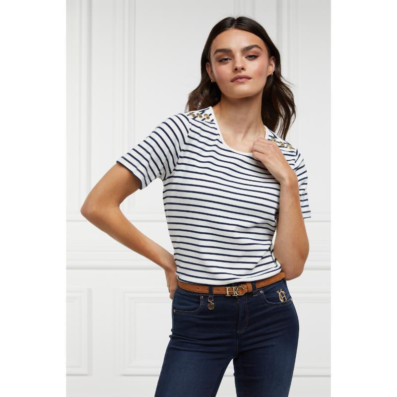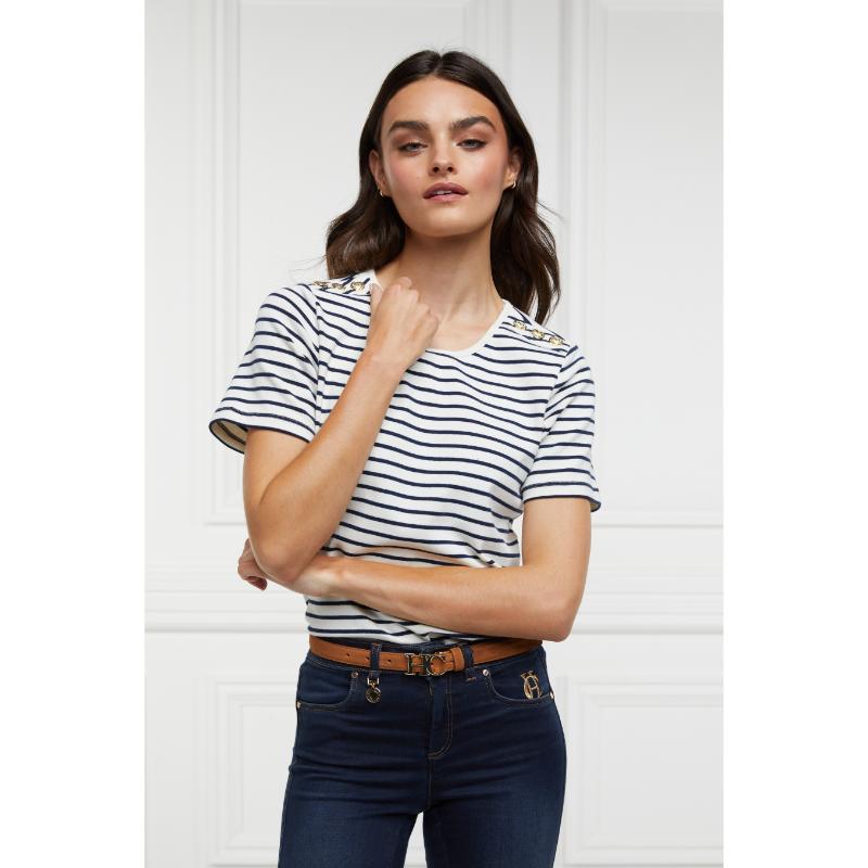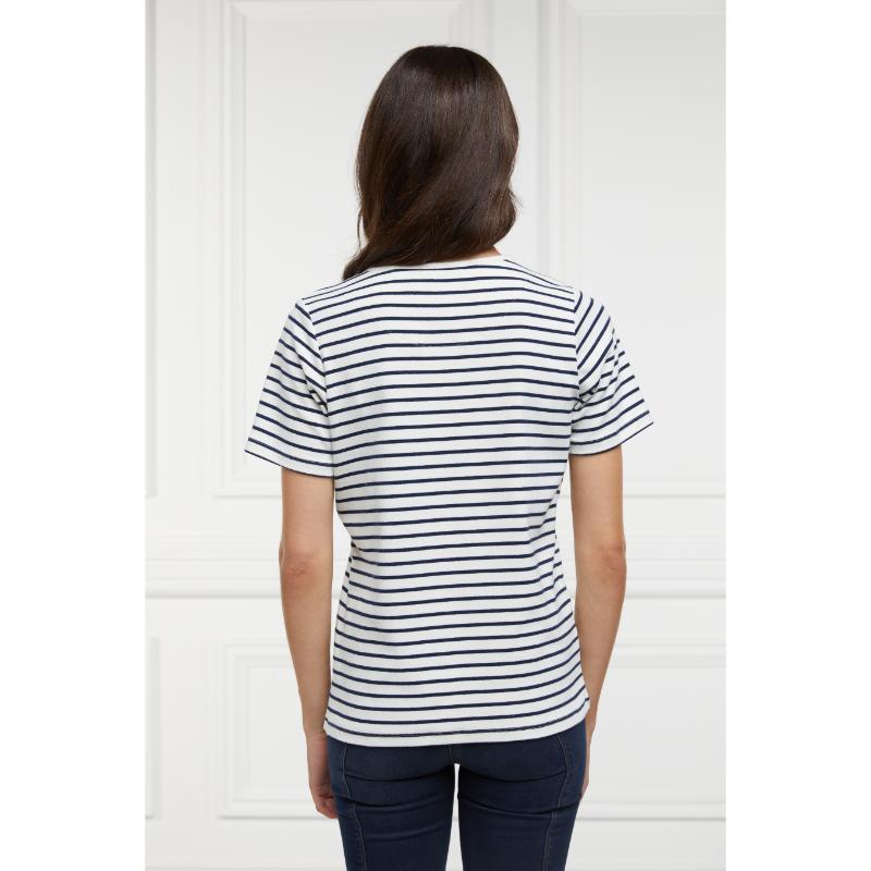 Holland Cooper Padstow Ladies Crew Neck T-Shirt - Natural Ink/Navy Stripe