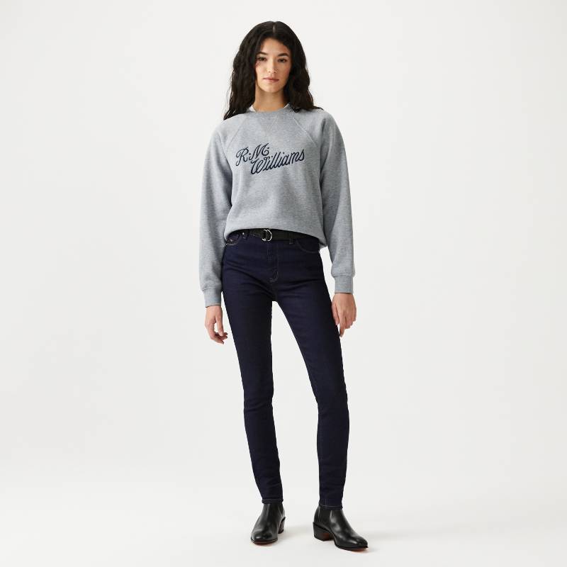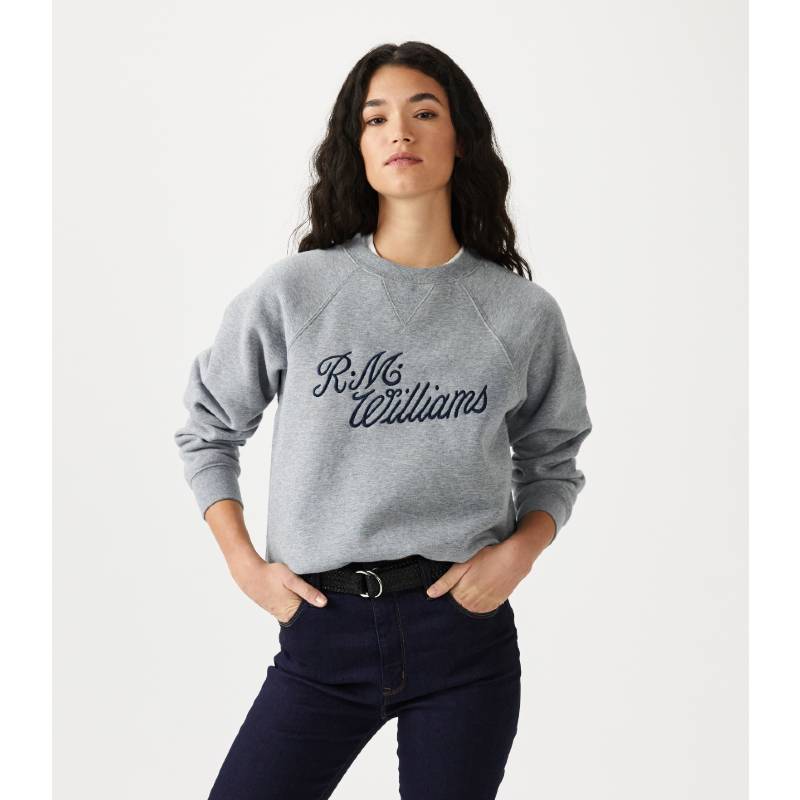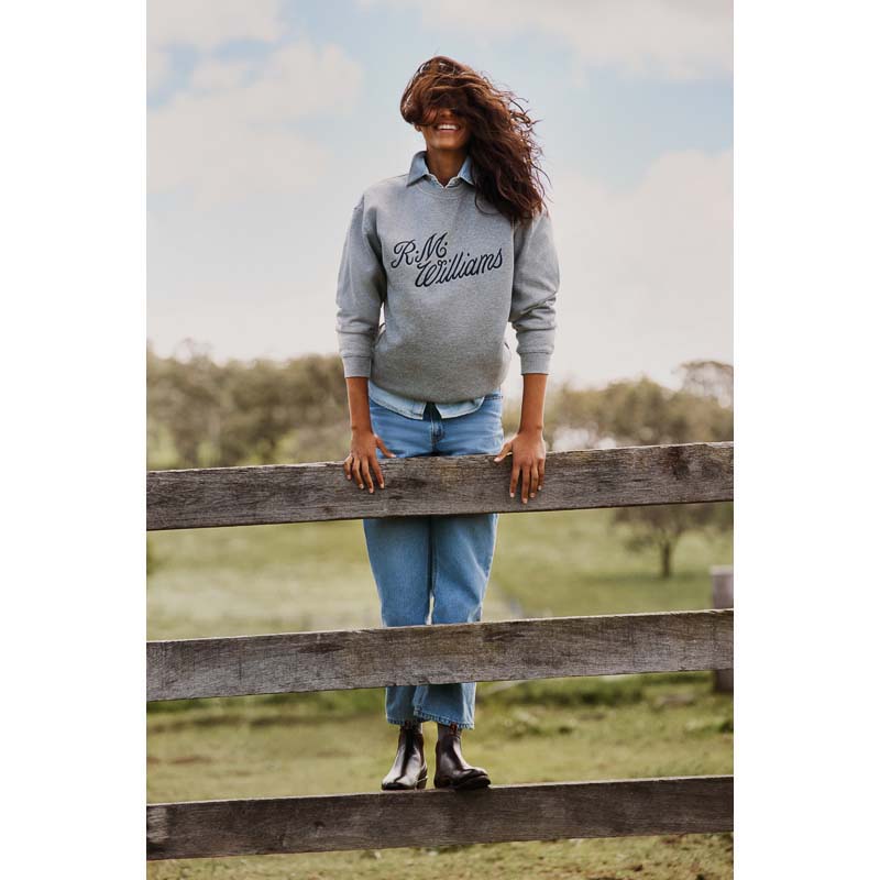 R.M.Williams Script Ladies Crew Neck Sweater - Grey/Blue