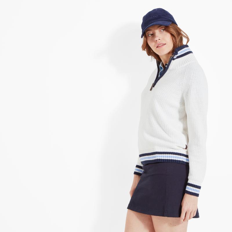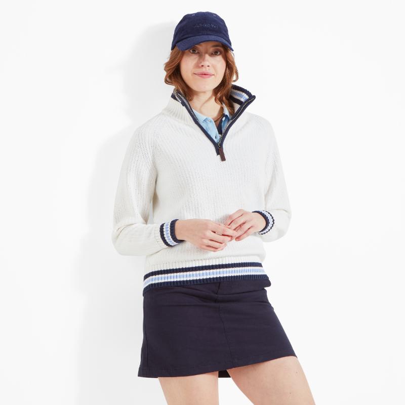 Schoffel Havelet Bay 1/4 Zip Ladies Jumper - Soft White/Sky Blue