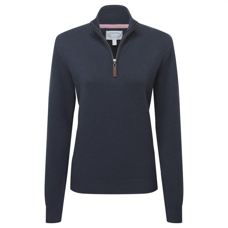 Stay warm in style with this Schoffel Pateley Ladies Jumper. The cotton and wool blend ensures it's both comfortable and durable. This popular quarter-zip design features a YKK zip with Schoffel branded pull. The ribbed collar, cuffs and hem give it a flattering fit. Perfect for all weather and occasions!