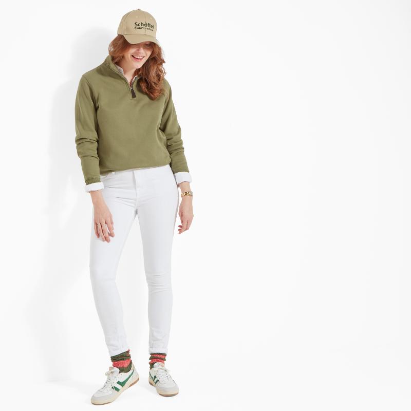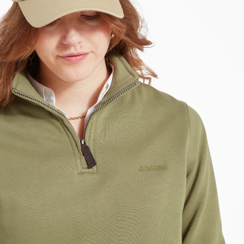 Schoffel Sennen Cove Ladies 1/4 Zip Sweatshirt - Light Khaki Green