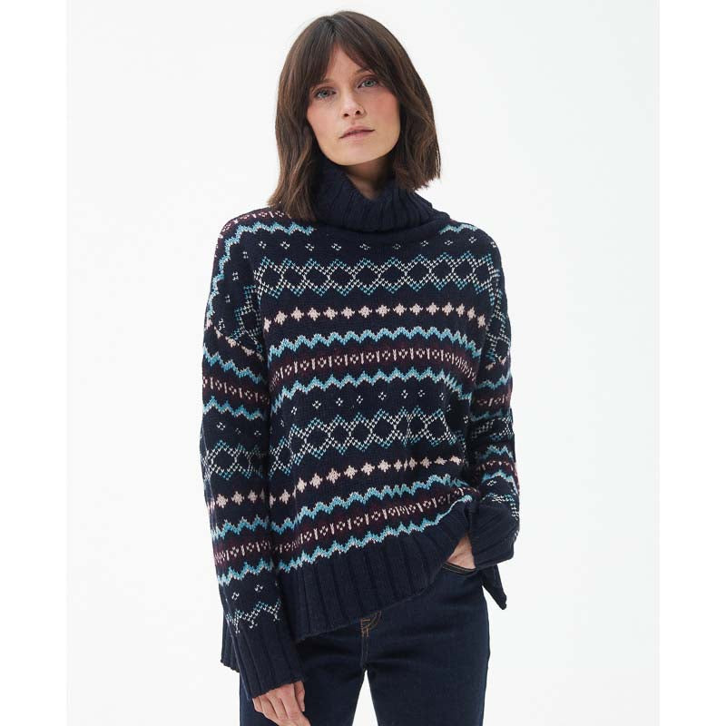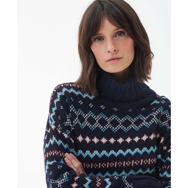 Barbour Fox Fairisle Ladies Roll Neck Jumper - Navy
