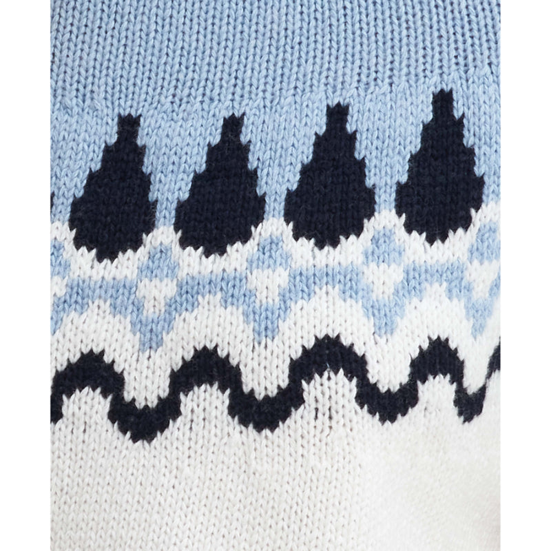 The Barbour Kingsford Knitted Ladies Jumper is a versatile addition to any wardrobe, perfect for both casual and formal occasions. Made from a luxurious blend of cotton and wool, this crew neck knit features a stylish fairisle design around the front and back yoke. The full length raglan sleeves and rib trim at the cuff and hem provide both comfort and style. A must-have for any fashion-forward individual.