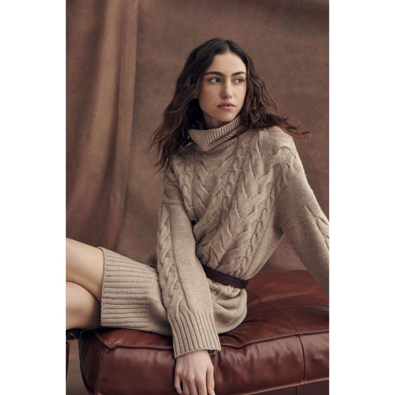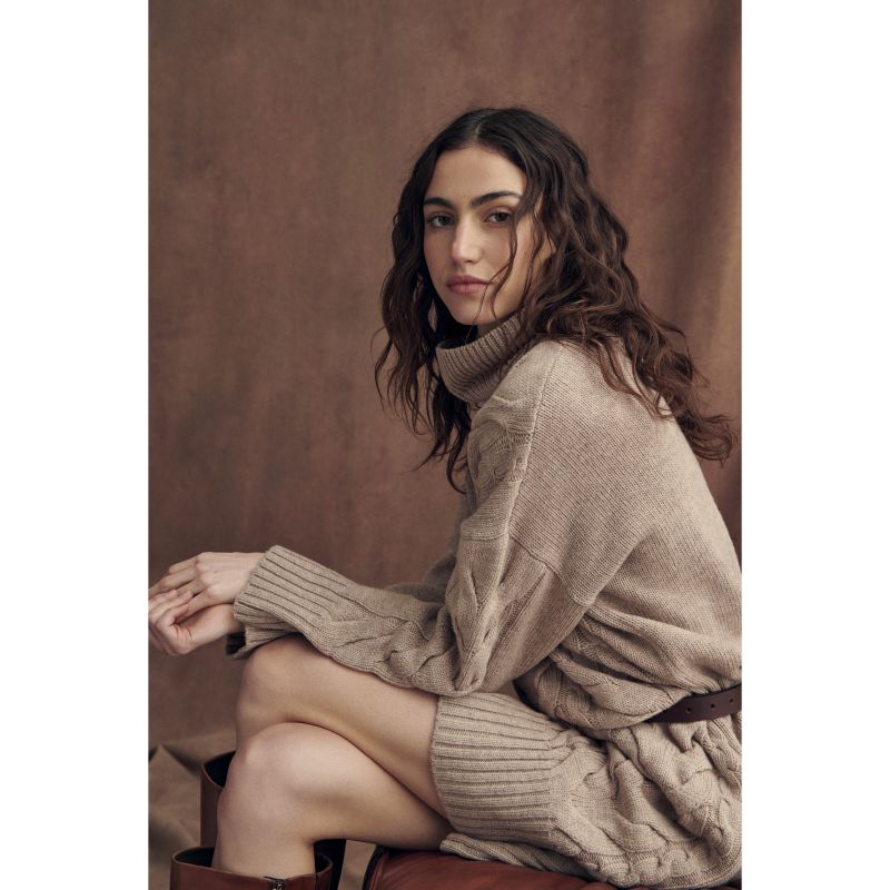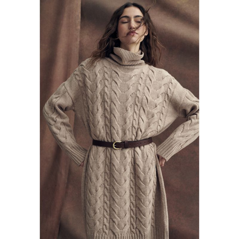 The Barbour Woodlane Knit Ladies Dress offers a contemporary style with a comfortable fit. Crafted from a cosy wool blend knit, the dress features a chunky cable stitch, ribbed roll neck, and ribbed hem and cuffs. A cable stitch detail at the front and sleeves adds a timeless, classic touch. Ideal for cold-weather days, this dress looks great when worn solo or cinched with a belt for a more tailored silhouette.