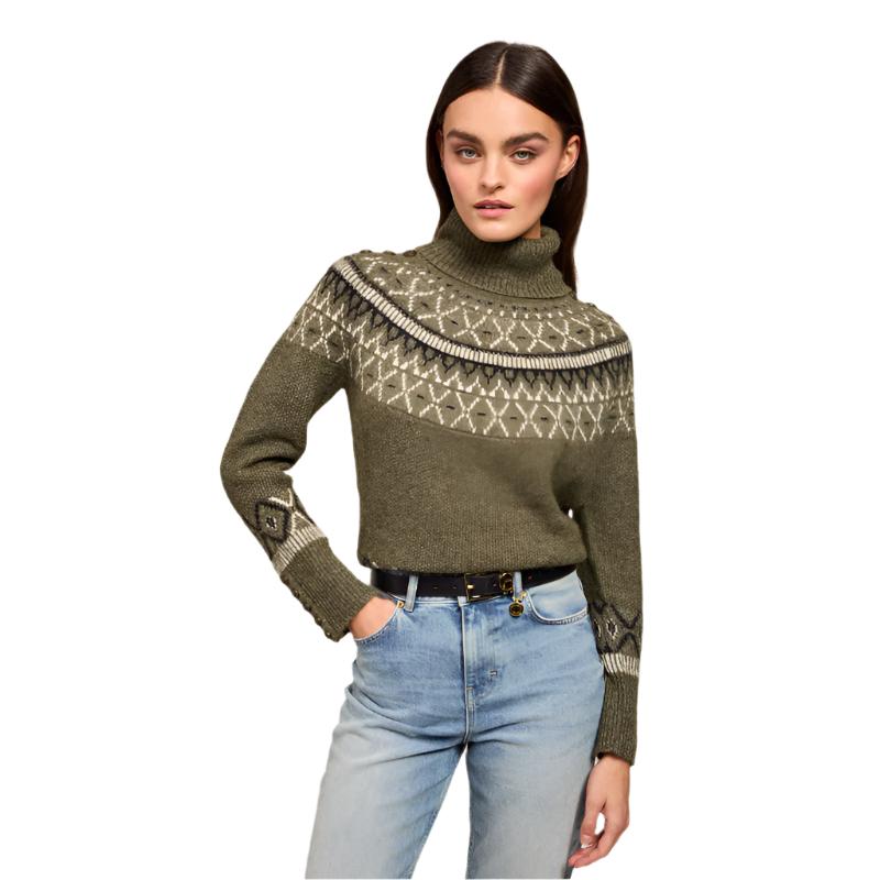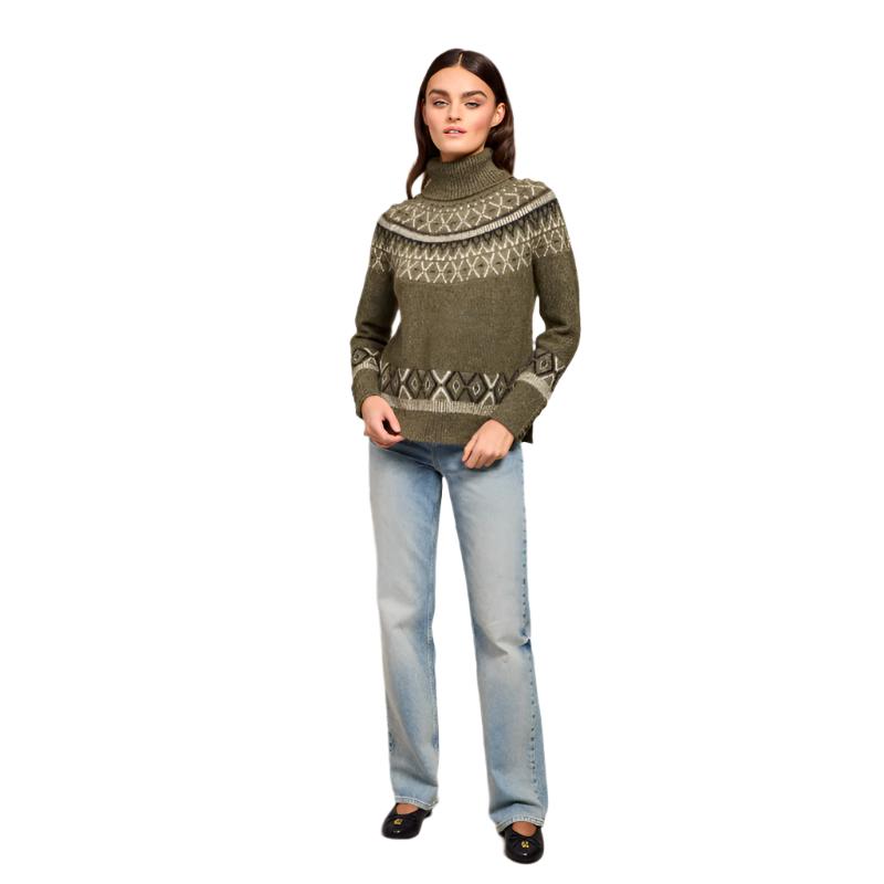 Holland Cooper Fairisle Knit Ladies Alpaca Mix Jumper - Khaki