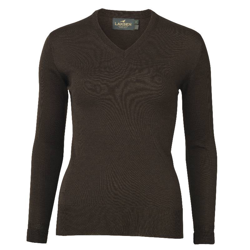 Laksen Carnaby V-Neck Merino Ladies Jumper - Chocolate
