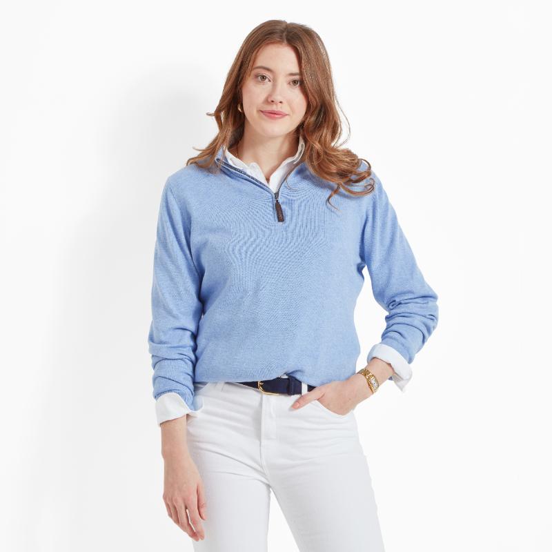 Schoffel Polperro Pima 1/4 Zip Ladies Jumper - Sky Blue