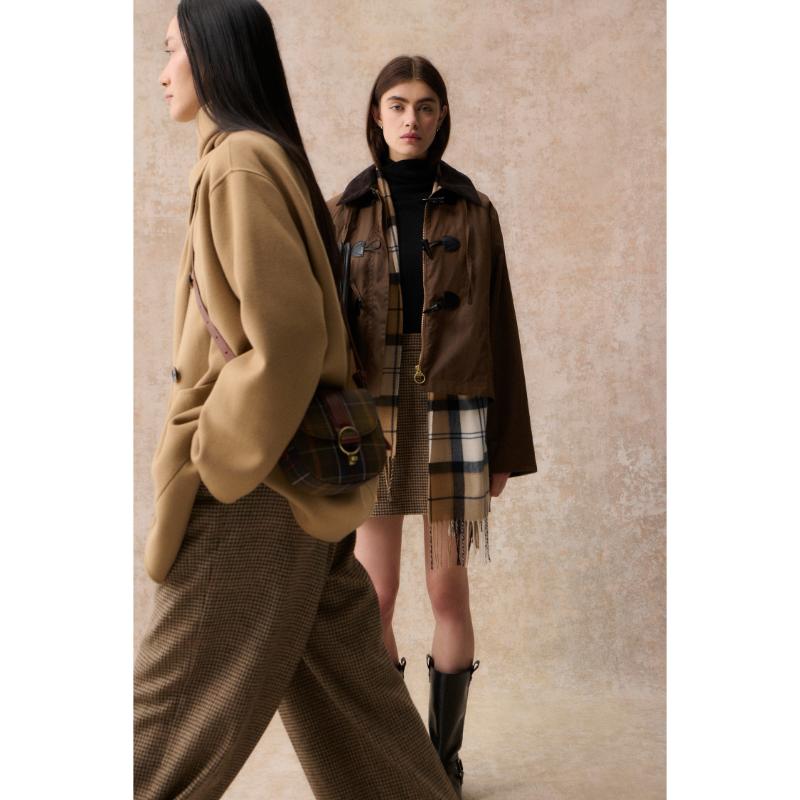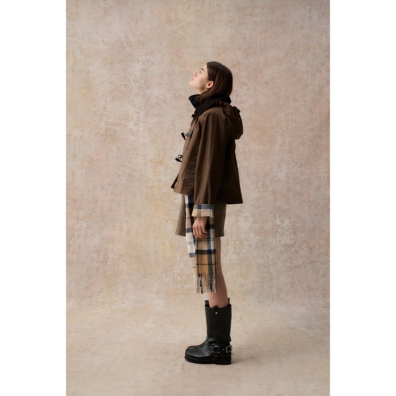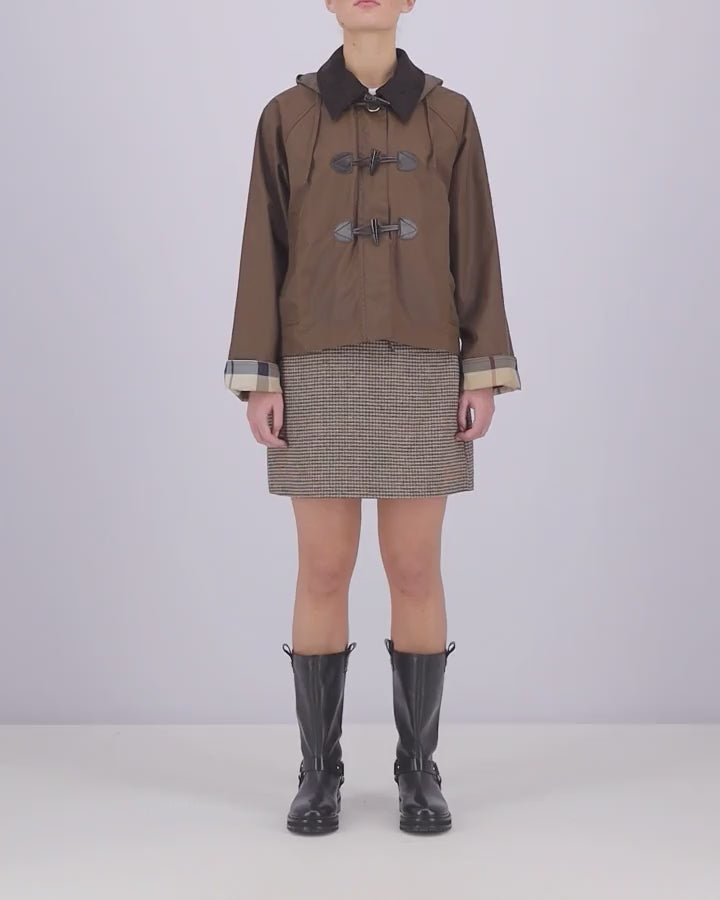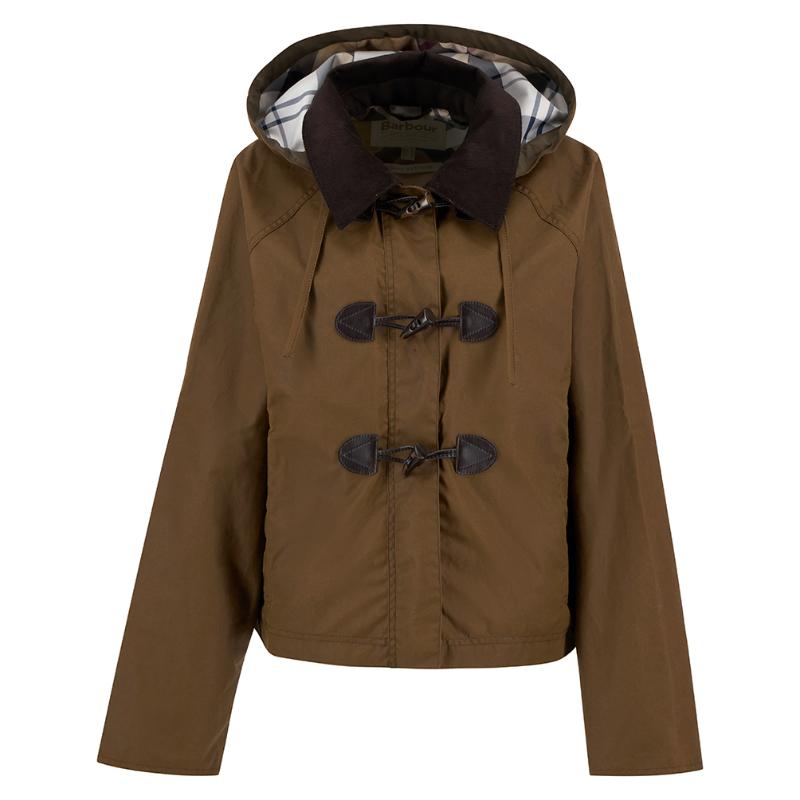 Barbour Myra Ladies Wax Duffle Jacket - Bark/Hessian Tartan