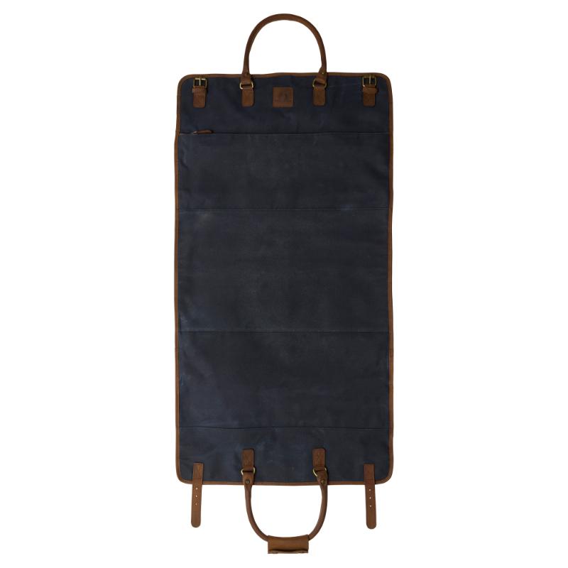 The waxed canvas duffle and suit carrier combine timeless style with practical design, making them perfect for weekend getaways or shooting excursions. Crafted from durable 12oz antique waxed canvas with leather accents, the interior is fully lined with premium silk-textile fabric for an elegant finish. A separate zippered compartment at one end offers dedicated shoe storage, keeping footwear separate from clothing for organised packing and easy access. The duffle fits seamlessly inside the fold-out suit carrier, which fastens securely with brass poppers. Both items are lined with luxurious silk-textile, providing excellent protection while maintaining sophisticated travel appeal. This expertly made set balances style and functionality for the discerning traveller.