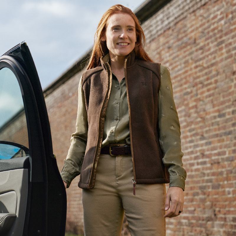 Harkila Sandhem Sherpa Ladies Fleece Waistcoat - Demitasse Brown