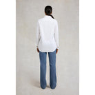 The Holland Cooper Aster Ladies Shirt offers a modern reinterpretation of the classic white shirt with its relaxed, boxy silhouette. It features a sharp collar and a concealed button placket, accentuated by a signature gold HC button at the neckline for a refined finish. Design details like a front pocket, a subtle back pleat, and delicate HC embroidery subtly enhance its tailored appeal. Completed with a gold rivet on the cuff, this versatile shirt transitions effortlessly from casual to smart occasions.