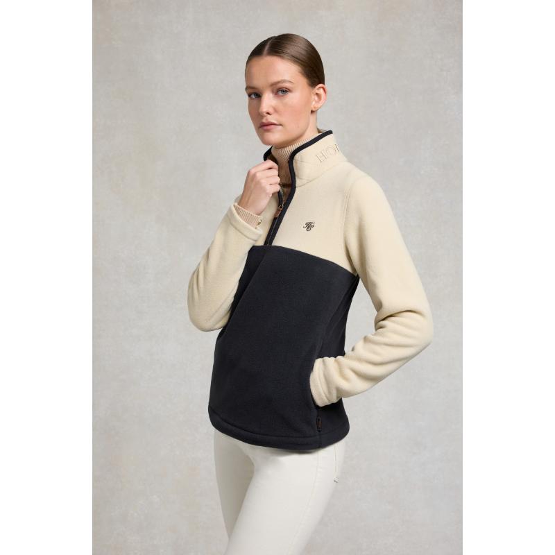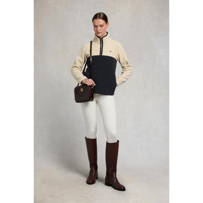 Holland Cooper Country Ladies Fleece Quarter Zip Jumper - Ecru Navy