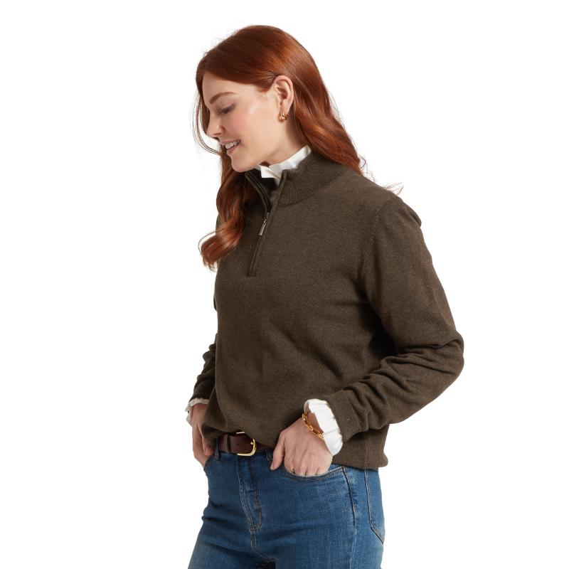 Schoffel Polperro Pima 1/4 Zip Ladies Jumper - Chocolate