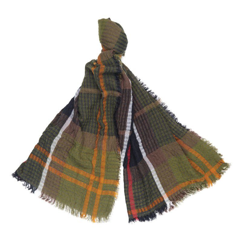 The Barbour Faith Tartan Ladies Wrap Scarf is a classic, featuring a subtle blend of tonal hues in Barbour's signature tartan styling. Crafted from a mid-weight fabric and cut in a large design, allowing you to wear it several different ways, with a textured finish and stylish frayed hem.