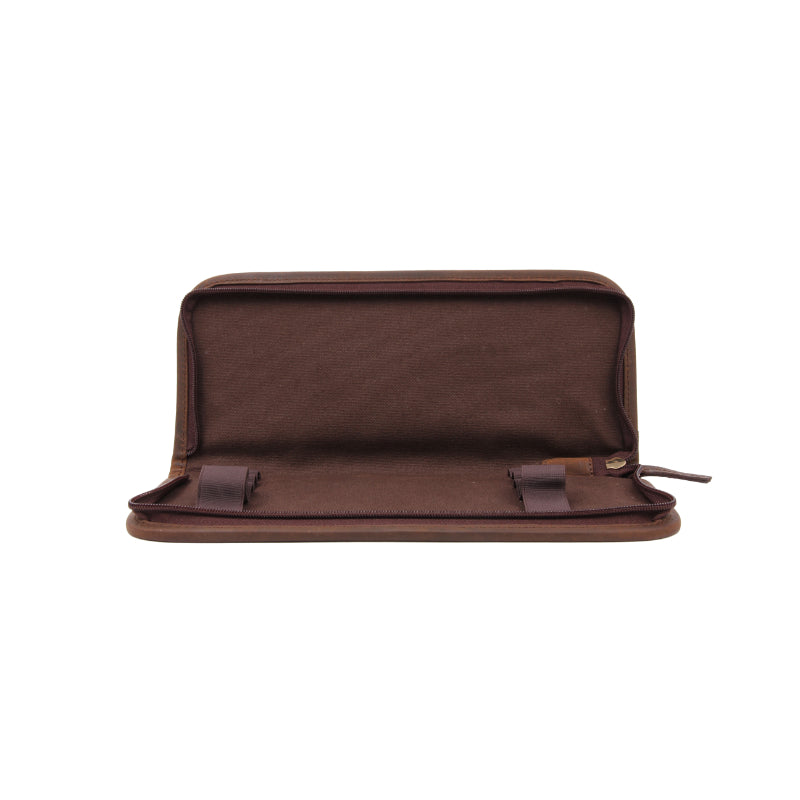 Keep your shooting accessories in top condition with the Leather Cleaning Pouch in Brown. Made from premium antique oiled leather, this long, flat pouch features a zip-around fastening and elastic loops to keep your cleaning equipment organized. Vintage finish over time adds a touch of style to this pouch.