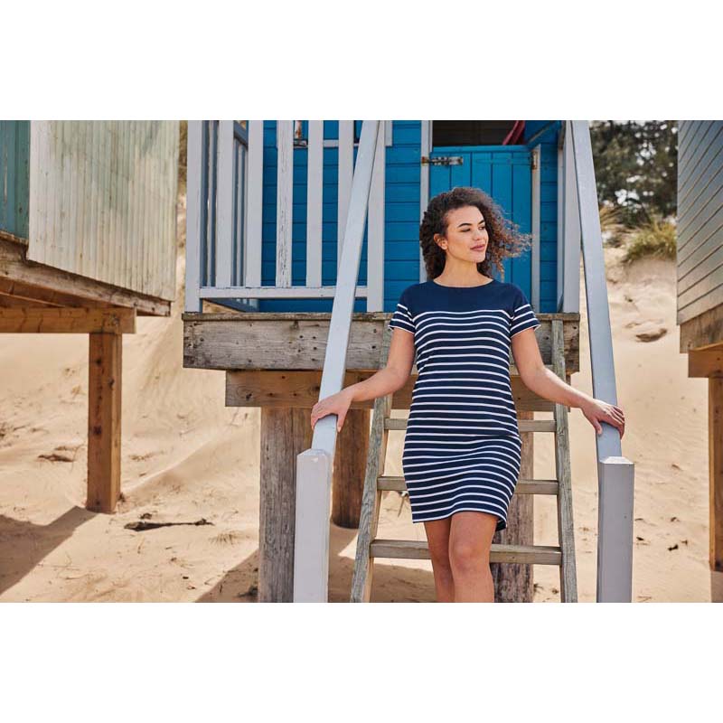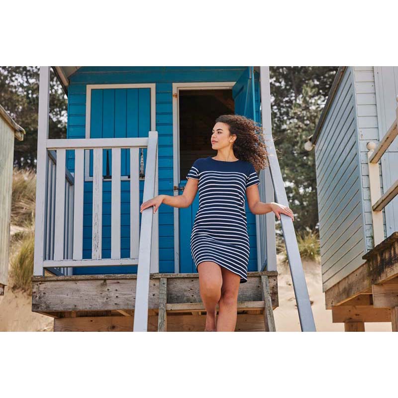 The Schoffel Beauport Ladies Dress is ideal for when you want something simple and stylish to just throw on and go. The super soft cotton composition is light and breathable, cut in a regular fit for all day comfort. The classic Breton stripe design is highly versatile, complete with Schoffel branded embroidery and a contrasting inner neck trim.