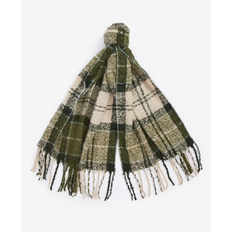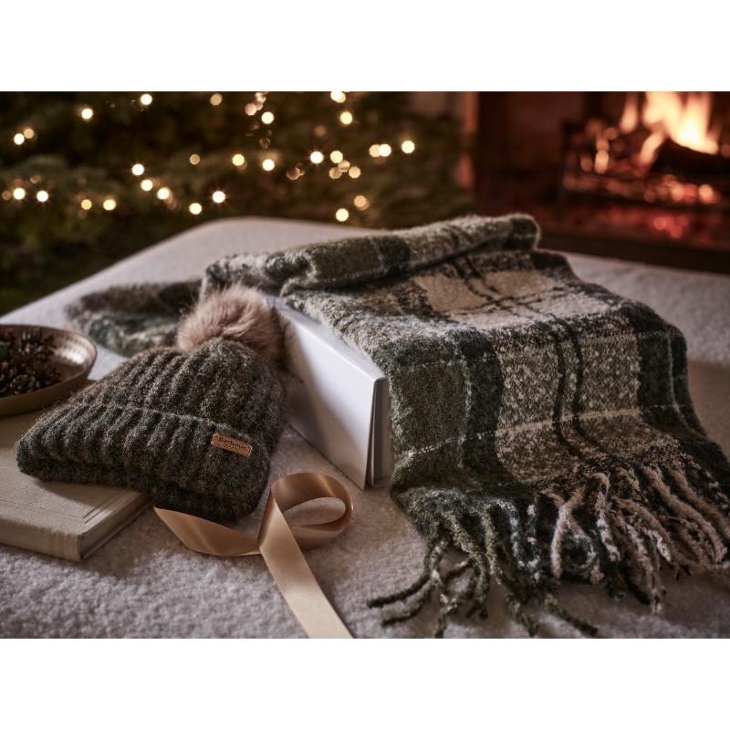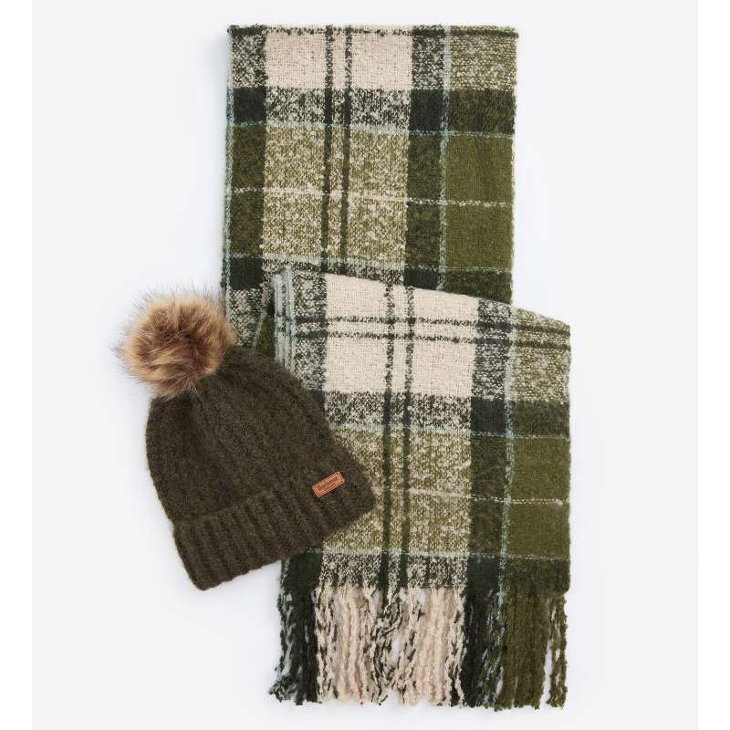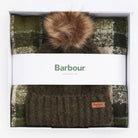 Barbour Saltburn Ladies Beanie & Tartan Scarf Set - Ancient Loden