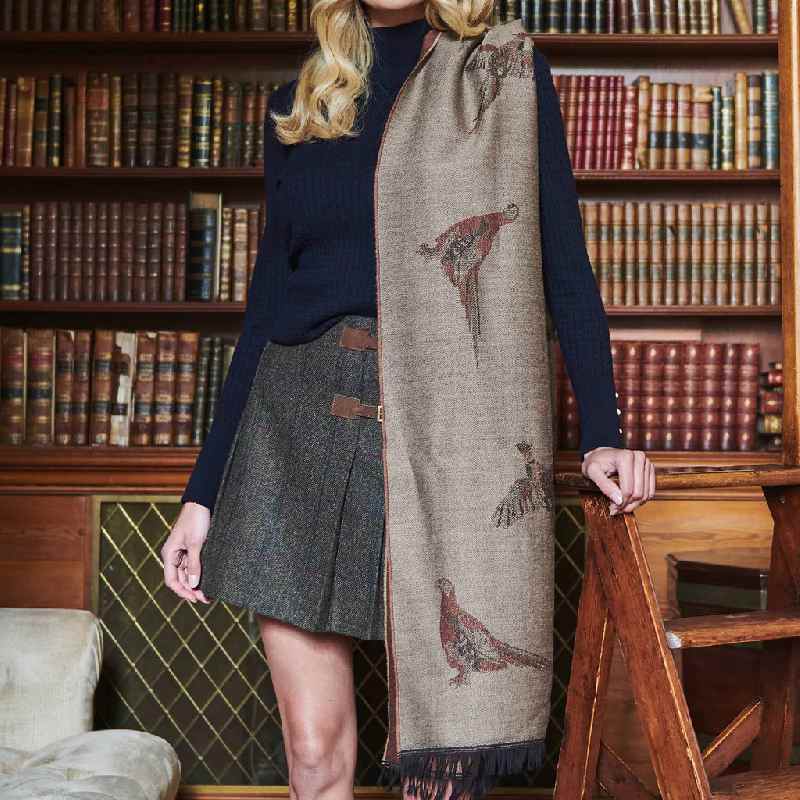 The Dubarry Birchdale Ladies Pheasant Wool Scarf is a really beautiful, classic accessory. Woven in Scotland and crafted from 100% wool in an intricate jacquard weave, creating a look and feel of pure luxury. The elegant flying pheasant design complements the tonal colourways, with fringed edge detail to add the finishing touch.