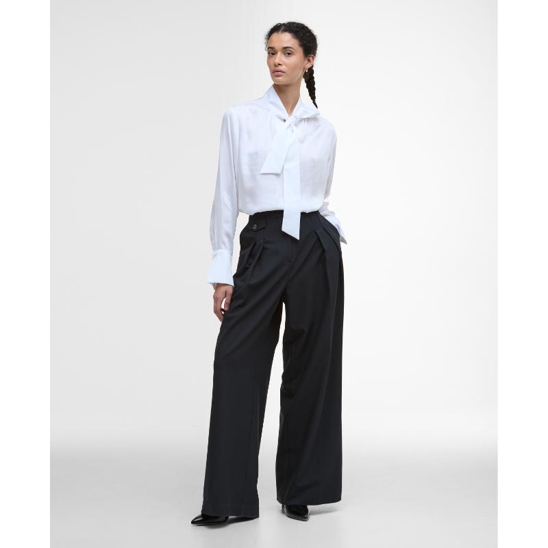 The Barbour Anastasia Ladies Shirt combines softness and style for effortless everyday wear. Designed with a flattering notch neckline and fabric ties, it offers a relaxed fit enhanced by gentle gathers. Full-length sleeves with classic cuffs provide a polished look, while a subtle tartan trim at the back neck adds distinctive detail. Lightweight and versatile, this shirt is an essential piece for a refined, comfortable wardrobe throughout the year.