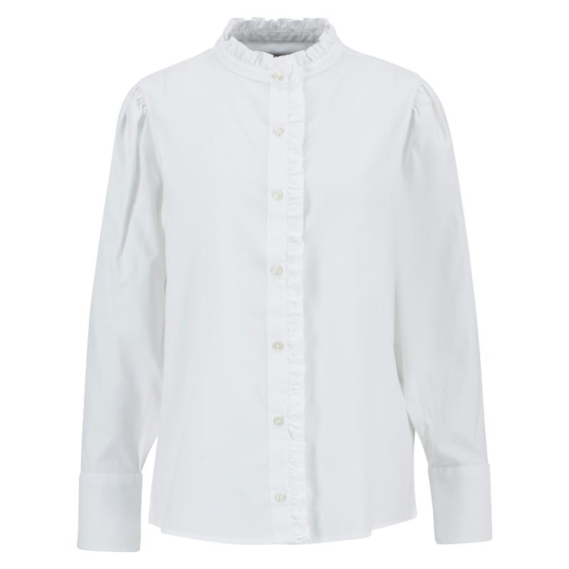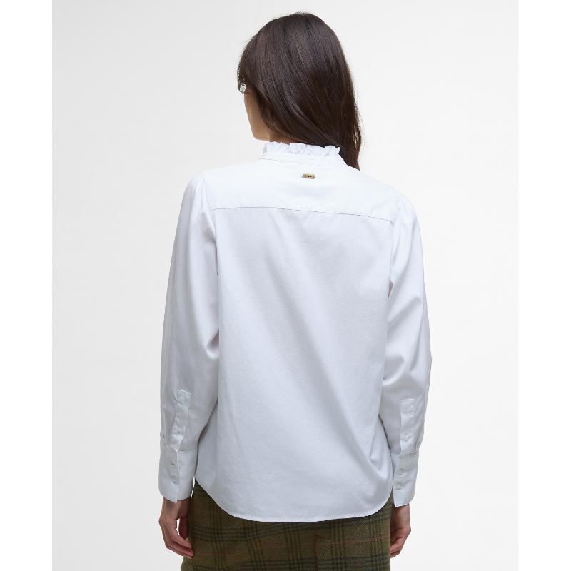 This Barbour Embleton Ladies Shirt is crafted from soft cotton Oxford fabric, ensuring comfort throughout the day. Its refined design features delicate ruffle detailing at the neckline and front placket, complemented by extended cuffs for a sophisticated finish. Versatile and elegant, this shirt transitions effortlessly from casual to polished looks, pairing perfectly with jeans or tailored trousers. A timeless addition to any wardrobe, it combines classic style with subtle feminine touches.