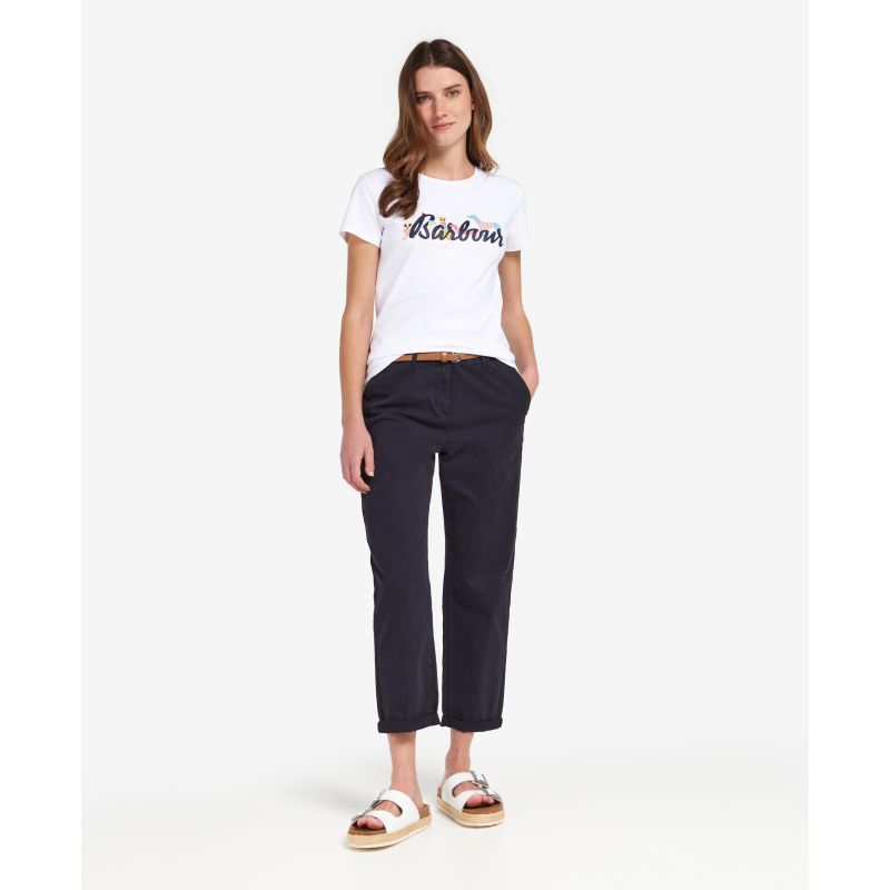 The Barbour Southport Ladies T-Shirt is a simple yet stylish cotton tee, perfect for layering and those relaxed weekend vibes. The cotton is sustainably sourced via the Better Cotton initiative and mixed with just a hint of elastane for a comfortable stretch. Cut in a slim fit with short sleeves and finished with an adorable multi-coloured dog and script graphic.