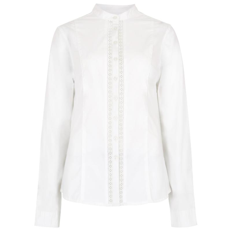 The Dubarry Waterlily Ladies Shirt is a must-have addition to any wardrobe. Made from a blend of cotton and elastane, this shirt features a sophisticated mandarin collar and delicate lace insert detail. The button front and long sleeves with buttoned cuffs offer a timeless and elegant look, while the front body seams, back darts, and double back yoke ensure a flattering fit. Perfect for layering underneath jackets, this shirt is both stylish and practical.