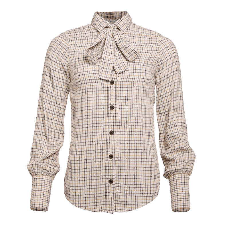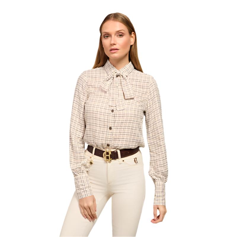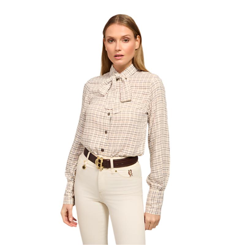 This Holland Cooper Heritage Ladies Shirt offers a modern, versatile look with its tailored, relaxed fit. Crafted in a lightweight fabric with delicate puff sleeves and statement pussybow collar, it features classic country checks and gold rivets to each cuff, making it perfect for bringing timeless style to any country wardrobe.