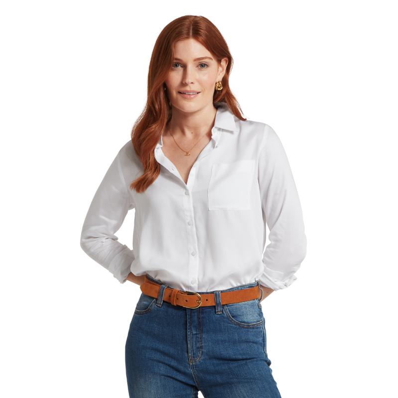Crafted from 100% modal with a smooth satin finish, the Schöffel Alton Ladies Blouse in white offers a refined, lightweight feel. Its classic collar and chest pocket provide timeless detailing, while the A-line fit and side splits with a dropped hem ensure comfortable movement and a flattering silhouette. Ideal for both professional and casual settings, this blouse combines elegance with practical design.