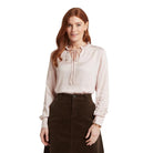 - Versatile tie neck - wear in a bow or undone