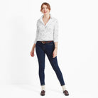 The Schoffel Ladies Norfolk Shirt is a luxurious addition to any wardrobe. Made from a soft cotton blend with added stretch, this shirt provides a skinny fitted silhouette and features a stunning hand-drawn digital print in seven different colorways. With a tailored fit, classic point collar, and single button cuffs, this machine-washable shirt is both bold and elegant. Perfect for both tucking in and leaving loose, it pairs beautifully with smart trousers for a chic and sophisticated look.
