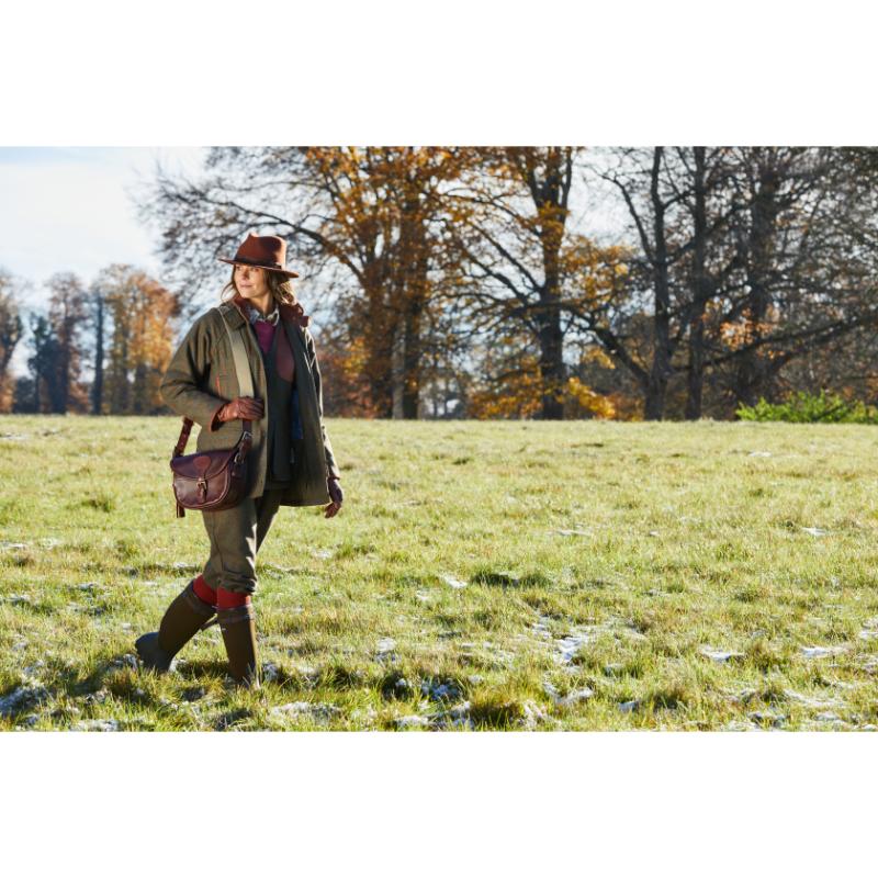 The Alan Paine Combrook Ladies Tweed Shooting Waistcoat is a functional waistcoat in 100% pure wool tweed with a water-repellent finish, ideal if caught out in light rain. Elegantly tailored with padded faux suede shoulder panels and roomy cartridge pockets finished with a contrasting dramatic lining.