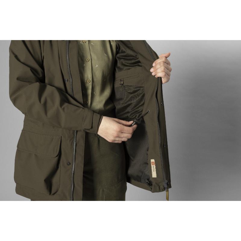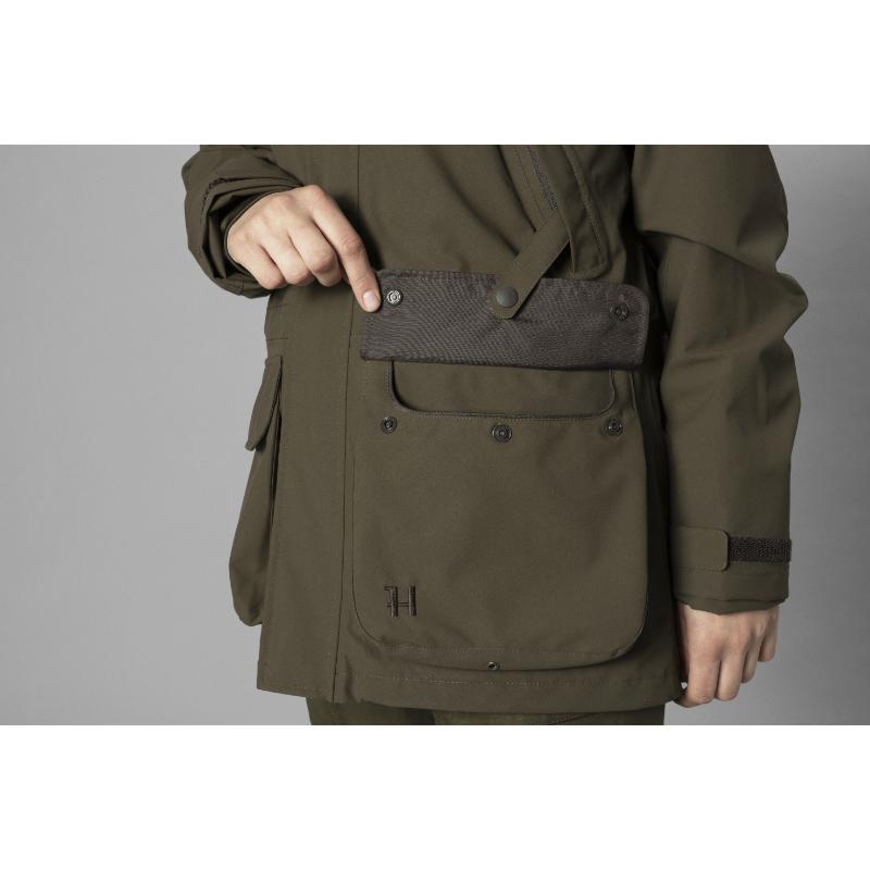 Harkila Orton Technical HWS Ladies Waterproof Jacket is the perfect choice for the modern female shooter. Offering complete protection from the wind and rain with a HWS® 2-layer technology, it features a stretch fabric and low-noise membrane for unrestricted and quiet movement. The classic corduroy trim adds comfort, while practical features like a stowaway hood and adjustable straps provide convenience. Stay dry, comfortable, and stylish during all your outdoor adventures.
