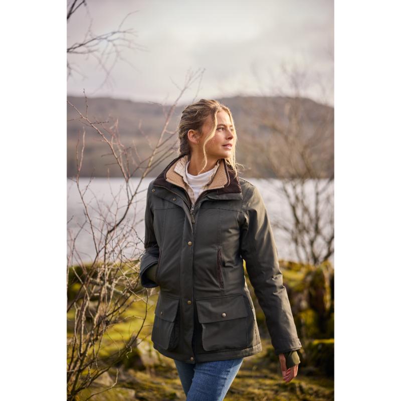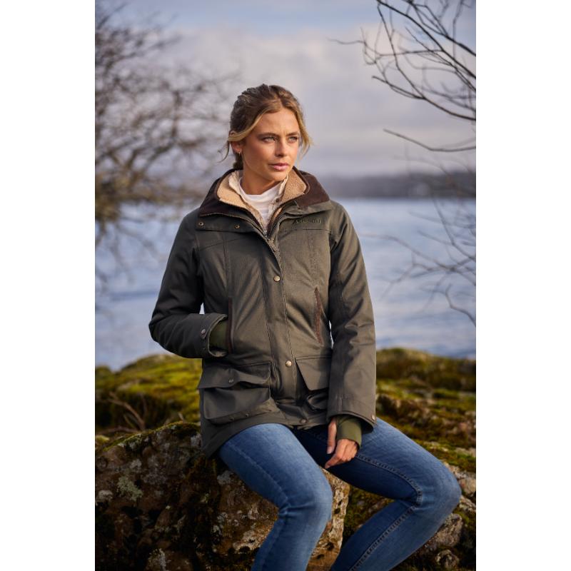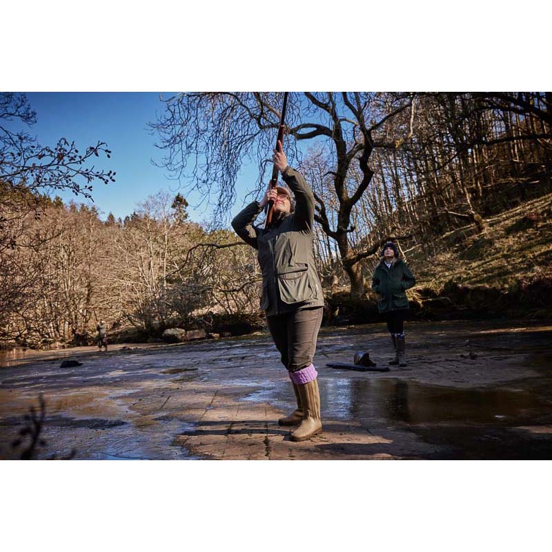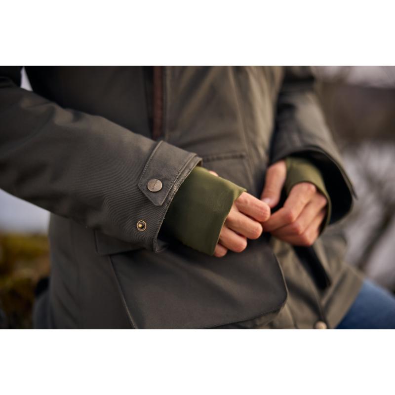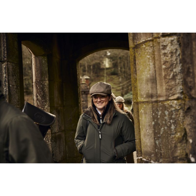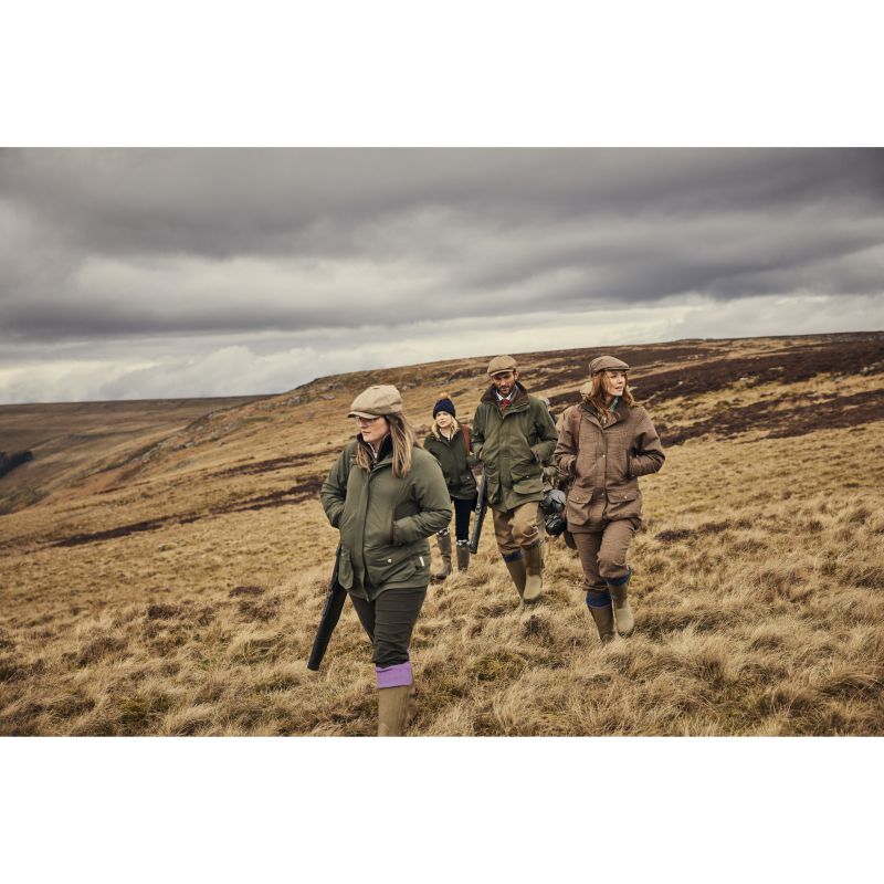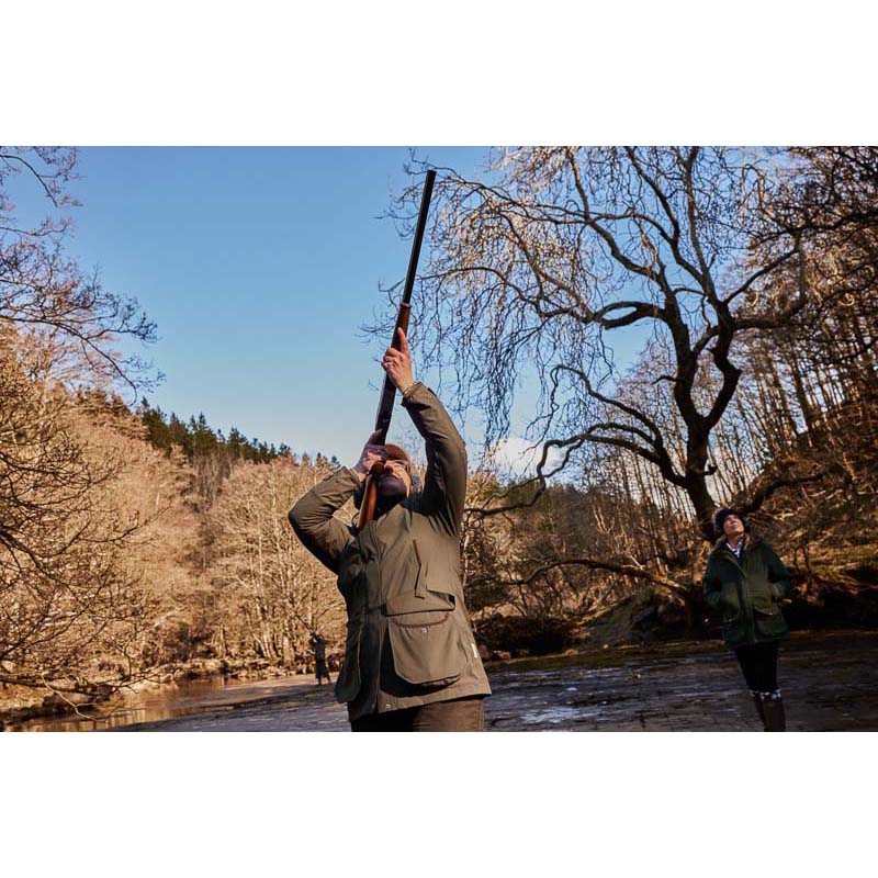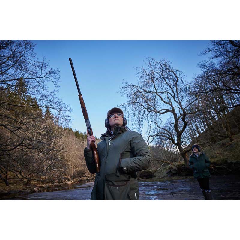 The Schöffel Waterproof Teal Ultralight is billed as the German brand’s lightest ever ladies shooting coat. The coat’s Venturi® 2 layer laminate keeps wind and water at bay, while its bellows pockets feature retainer straps for quick and easy access to cartridges. A removable recoil pad adds extra protection to the wearer’s shoulder pocket. Microfleece-lined handwarmer pockets will come in useful when there is a nip in the air, while the handy detachable and adjustable stowaway hood can be easily called into action when intermittent raindrops turn into a downpour. The coat would look terrific paired with a suede fedora or elegant silk neck scarf with hints of yellow, purple or coral. Machine washable.