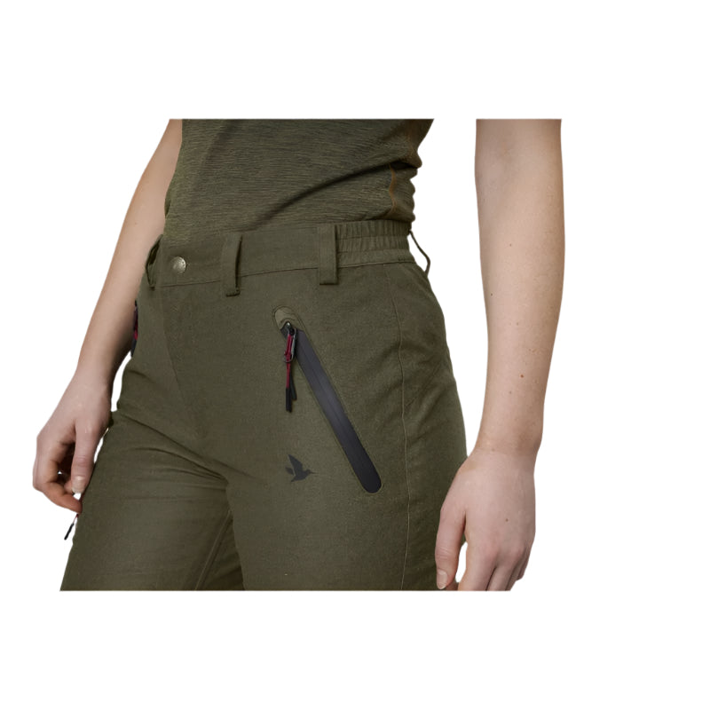 The Seeland Avail Ladies SEETEX Trousers are rather smart and highly practical, featuring a soft and comfortable brushed polyester outer and Seeland's own weatherproof 2-layer SEETEX® membrane. Featuring an elasticated waist and adjustable hems, with handy front pockets and a thigh pocket with water-repellent zips. These subtle yet hard-wearing trousers will be a great addition to your country wardrobe, suitable for a range of outdoor activities.