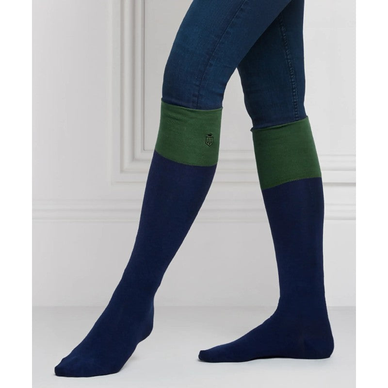 The Fairfax & Favor Ladies Boot Socks are the perfect partner for your tall boots! Soft and warm, crafted from a cotton blend with a hint of elastane for stretch and comfort. Featuring beautiful contrasting coloured tops that will show above your boots, complete with the iconic Fairfax & Favor shield logo.
