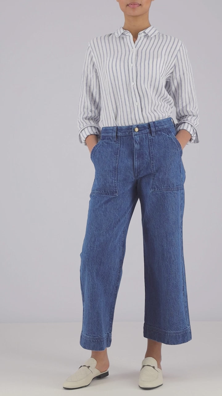 Channeling some fabulous sixties vibes, the Barbour Southport Ladies Cropped Jeans are the perfect blend of style and comfort. The wide-cropped leg is balanced out with large pocket detailing at the front and patch pockets at the back. With a fly zip opening, button fastening, and Barbour branded leather patch on the waistband. A versatile base for a range of outfits.