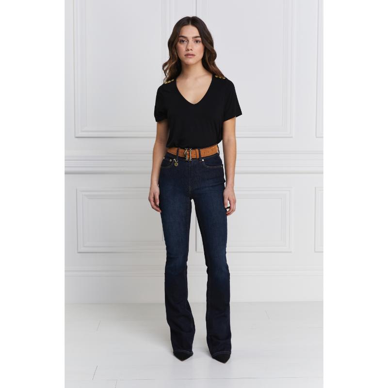 Introducing the Holland Cooper High Rise Flared Ladies Jeans. Designed with super soft, stretch denim and featuring a high-rise, fitted at the leg, they flick out into an elegant flare. Perfect for everyday looks, these jeans are detailed with signature crested hardware and a Holland Cooper coin charm. Plus, with colour fast technology and sculpting fabrics, these jeans are a must-have for any wardrobe.