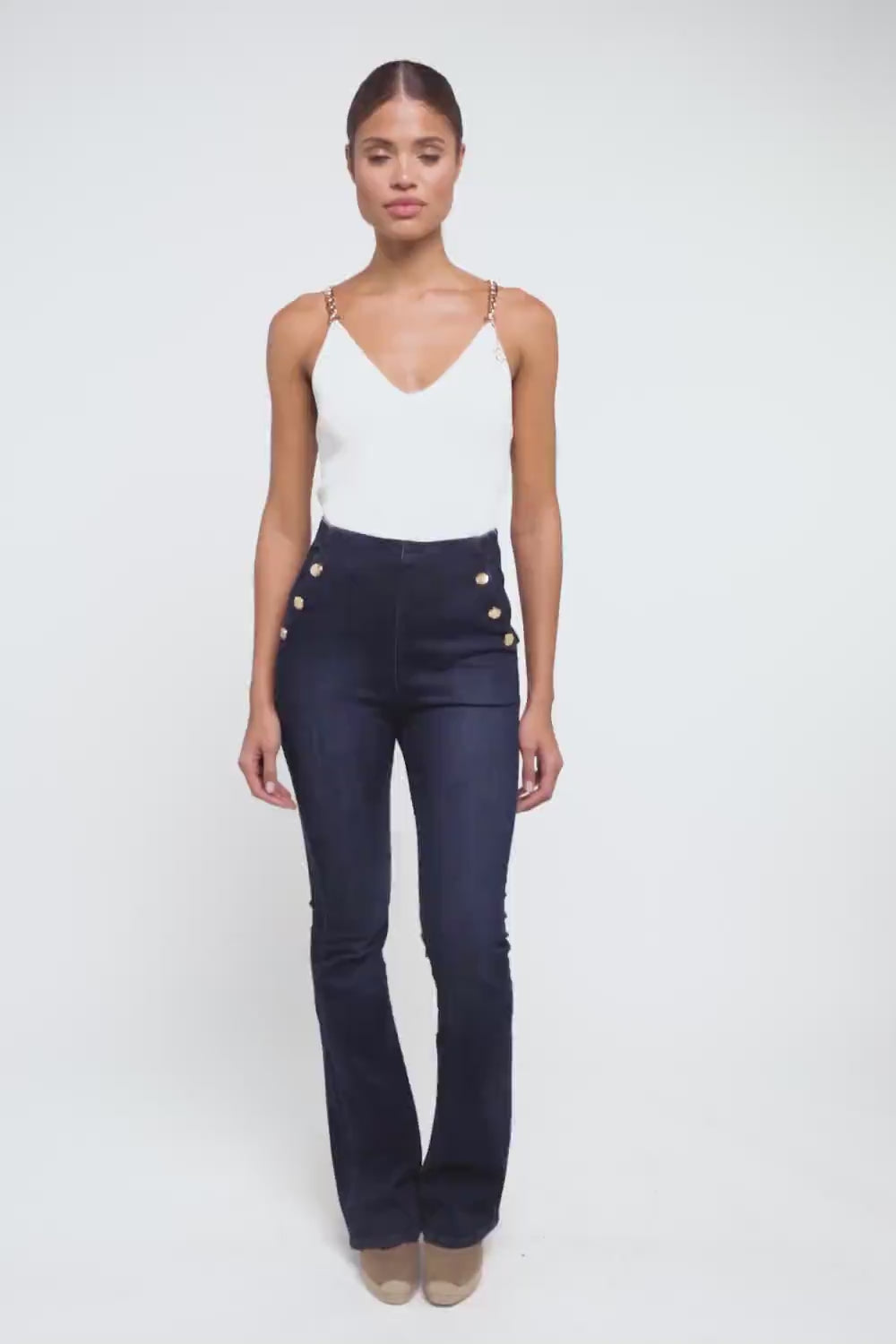 Holland Cooper High Rise Flared Ladies Jeans - Deep Indigo