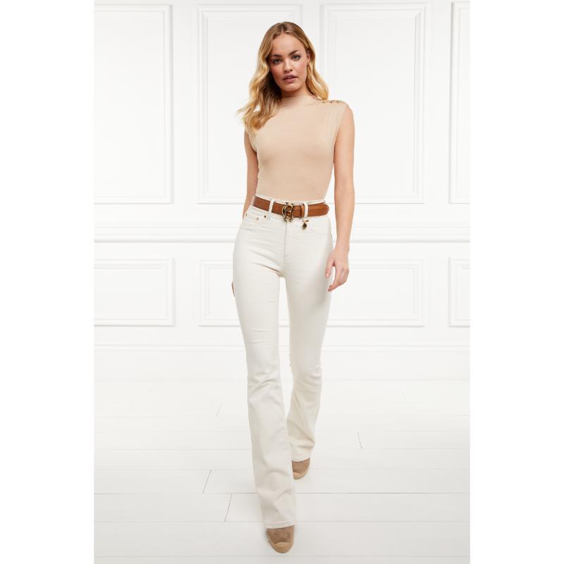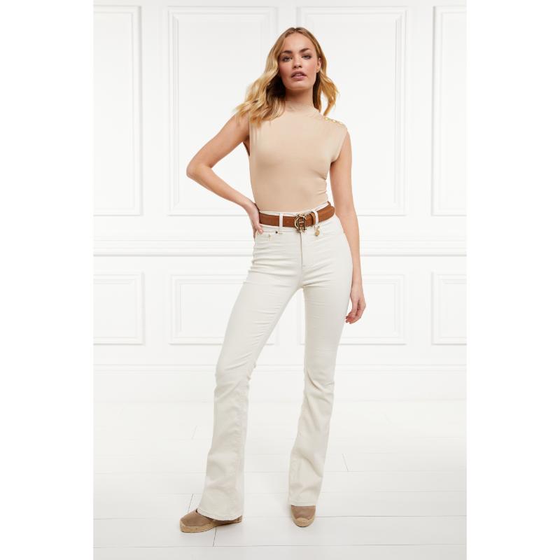 Holland Cooper High Rise Flared Ladies Jeans - Oatmeal