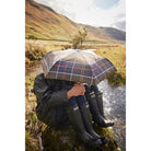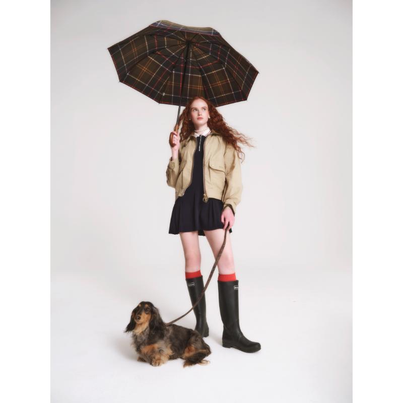 Stay stylish and dry with the Barbour Tartan Full Length Umbrella. Featuring an extra-large walker style design in the classic Barbour tartan, this umbrella repels rain to keep you protected. The sturdy, Barbour-engraved wooden crooked handle provides a comfortable grip. One size.