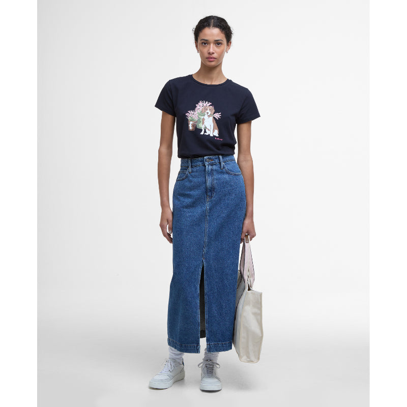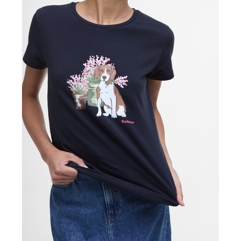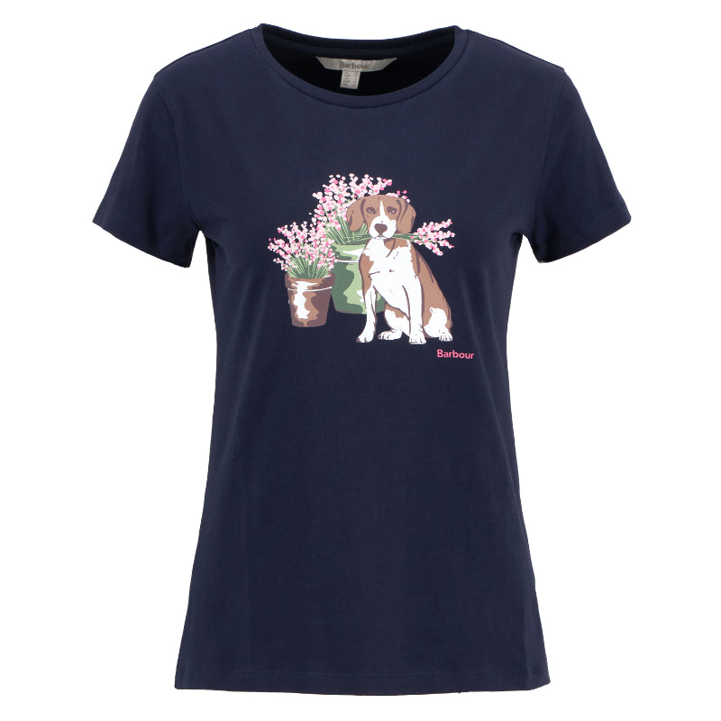 Discover the perfect blend of style and comfort with the Barbour Bowland Ladies T-Shirt. Made with a slim fit design, this t-shirt features a unique graphic of Barbour dogs and flowers on the chest. Elevate your wardrobe with this must-have piece.