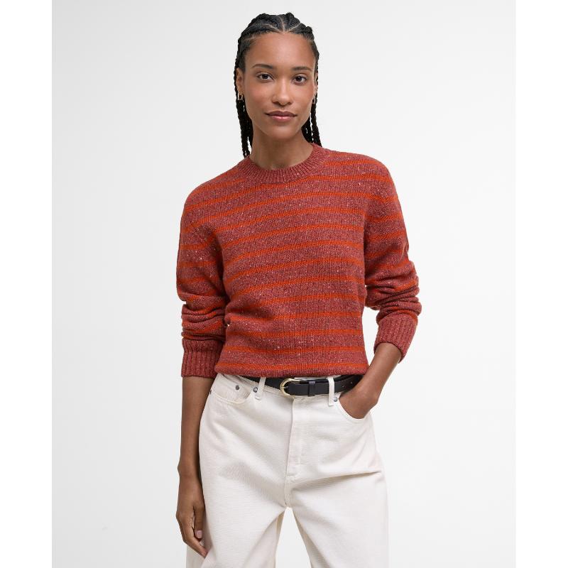 Barbour Claydon Ladies Knitted Jumper - Burnt Orange Stripe