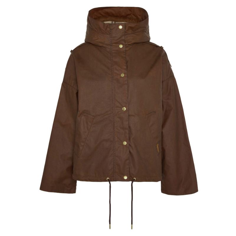 Embrace timeless style with the Barbour Inez Ladies Wax Jacket. This re-invented classic features a boxy, oversized silhouette, an oversized snorkel hood, and exaggerated wide sleeves for a dramatic touch. Made with 6oz Sylkoil waxed cotton and classic Barbour tartan lining, it's perfect for transitional weather.